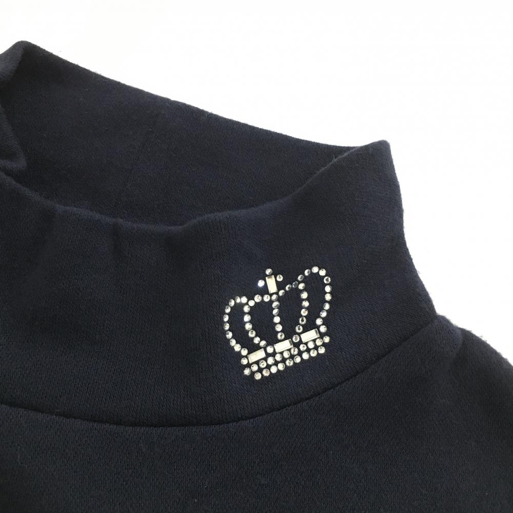 【美品】23区ゴルフ 長袖ハイネックシャツ ネイビー ラインストーン 起毛 レディース I(M) ゴルフウェア 23区