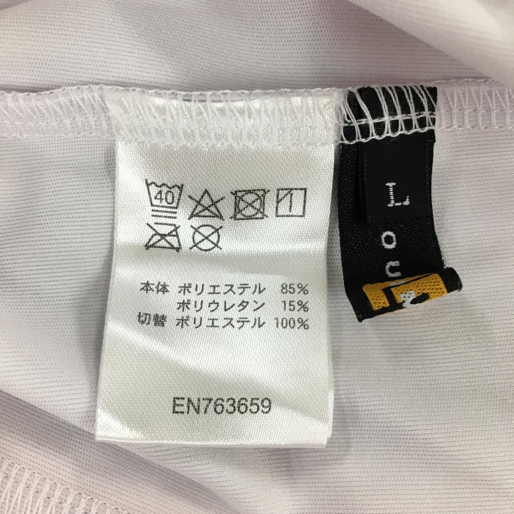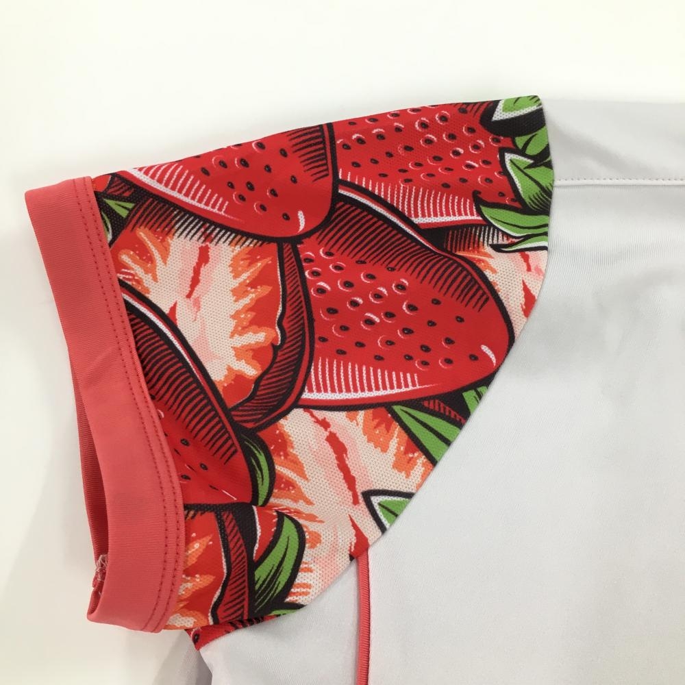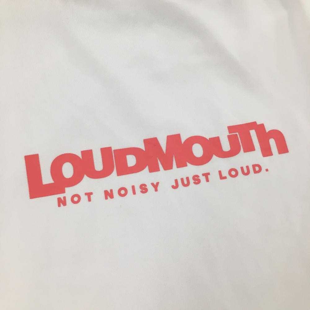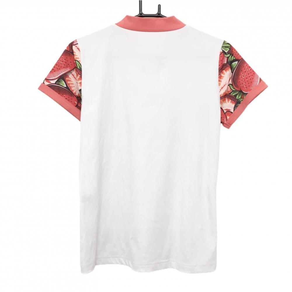 【美品】ラウドマウス 半袖ハイネックシャツ 白×ピンク 袖イチゴ柄&切替素材 ロゴプリント レディース L ゴルフウェア LOUDMOUTH