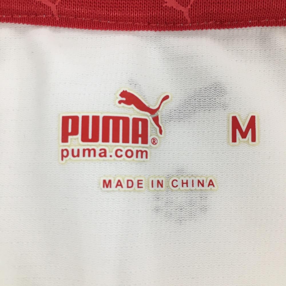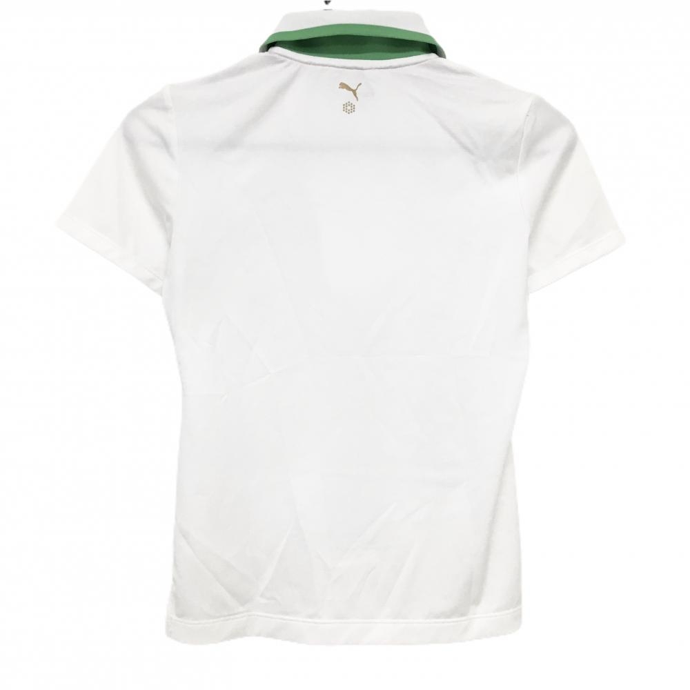 プーマ 半袖ポロシャツ 白×ライトグリーン ロゴ刺しゅう レディース M ゴルフウェア PUMA