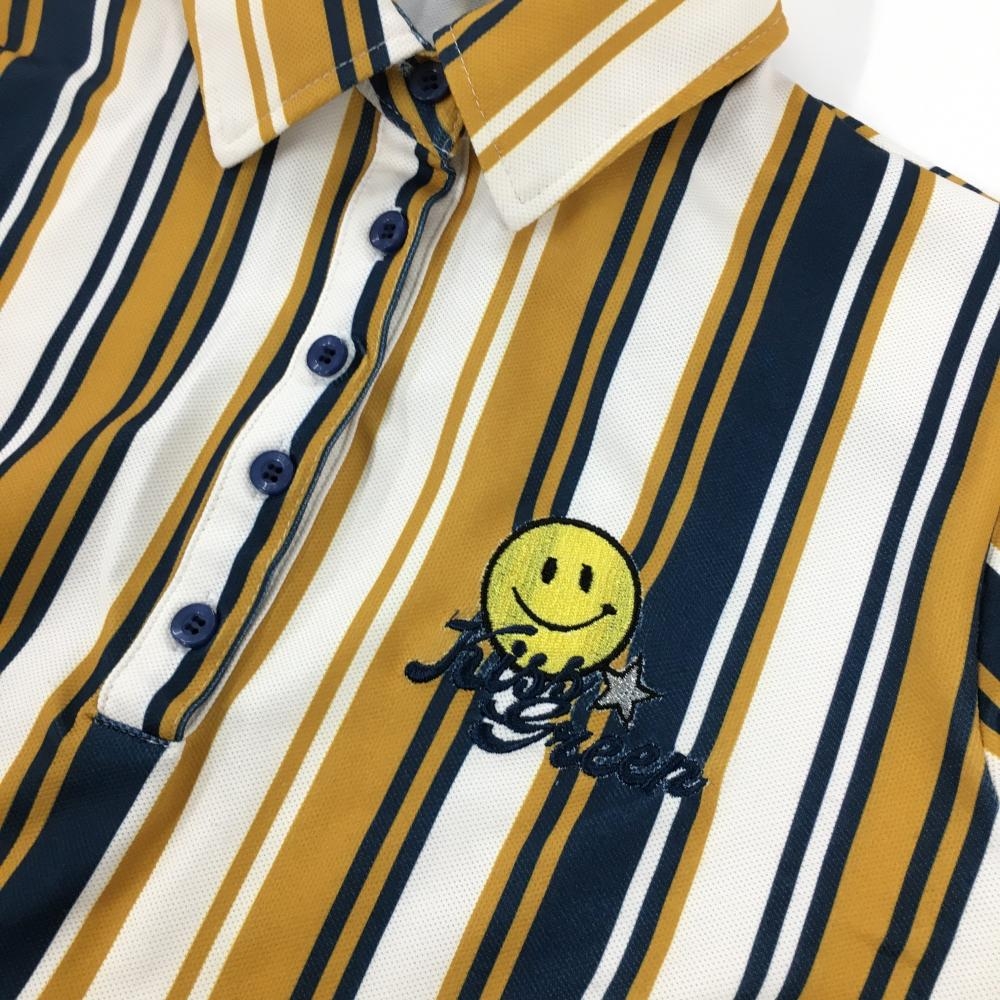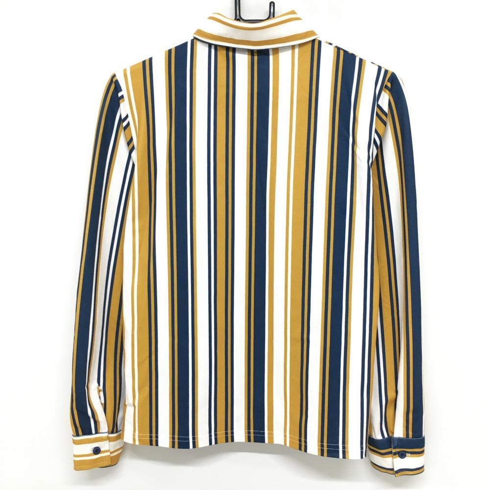 【超美品】キスオンザグリーン 長袖ポロシャツ マスタードイエロー×ネイビー ストライプ レディース 3(L) ゴルフウェア kiss on the green