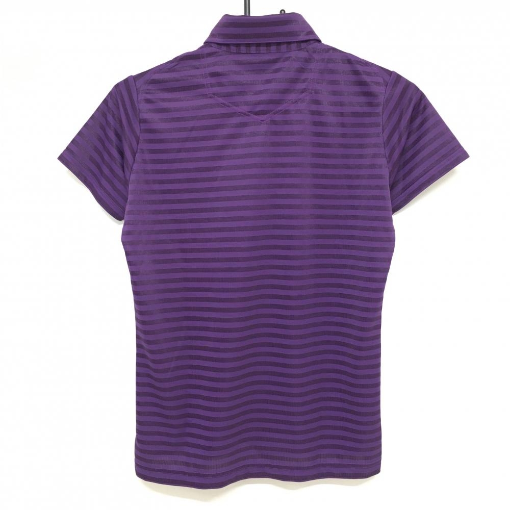 【超美品】パラディーゾ 半袖ポロシャツ パープル ボーダー ロゴ刺しゅう レディース M ゴルフウェア Paradiso