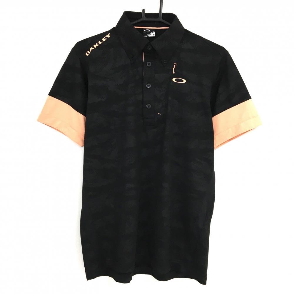 オークリー 半袖ポロシャツ 黒×ライトオレンジ カモフラ調織生地 メンズ M ゴルフウェア Oakley