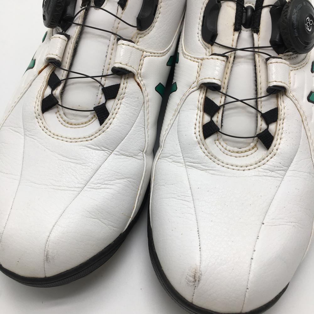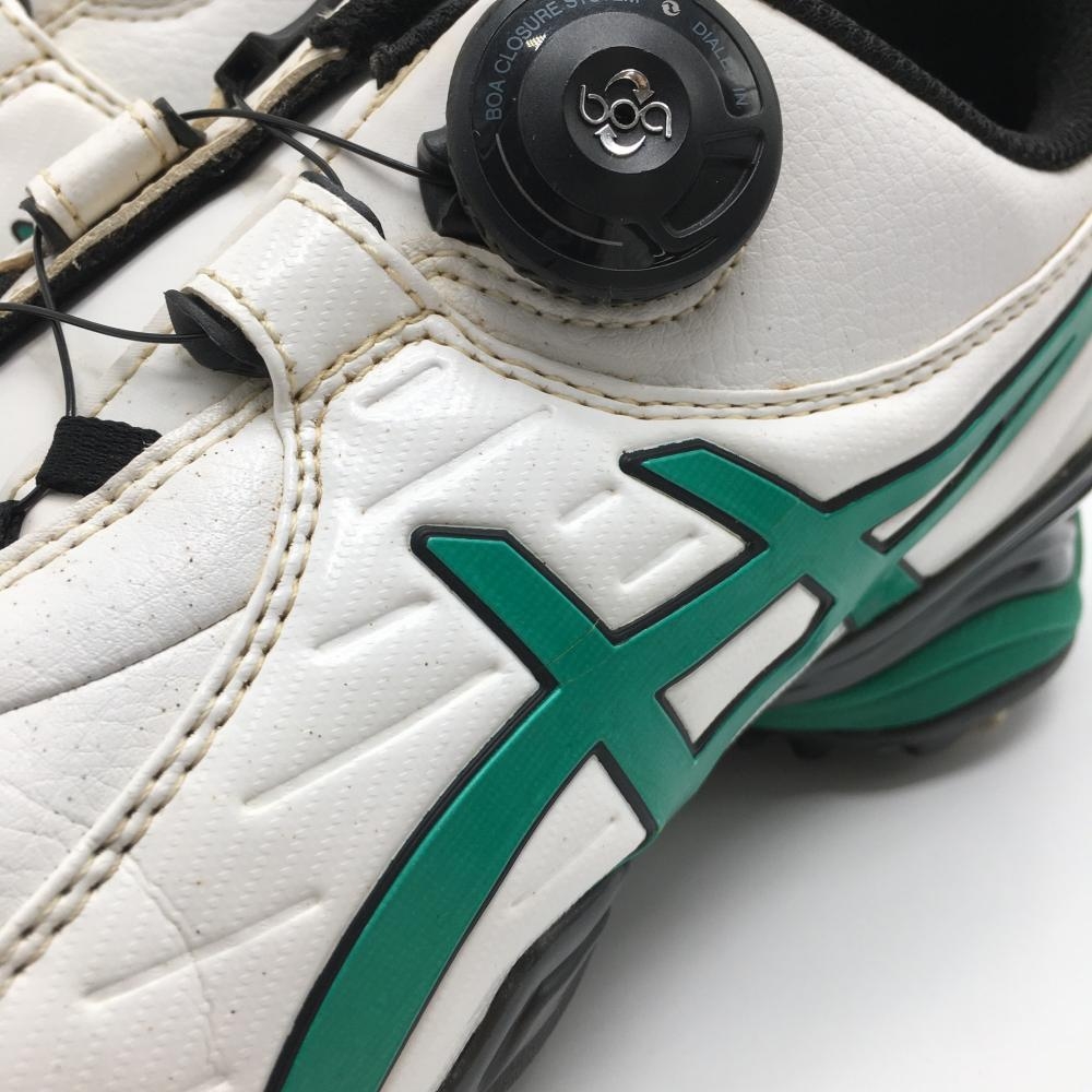 【美品】アシックス ゴルフシューズ 白×グリーン TGN910 ゲルエースツアー BOA メンズ 24.5 ゴルフウェア ASICS