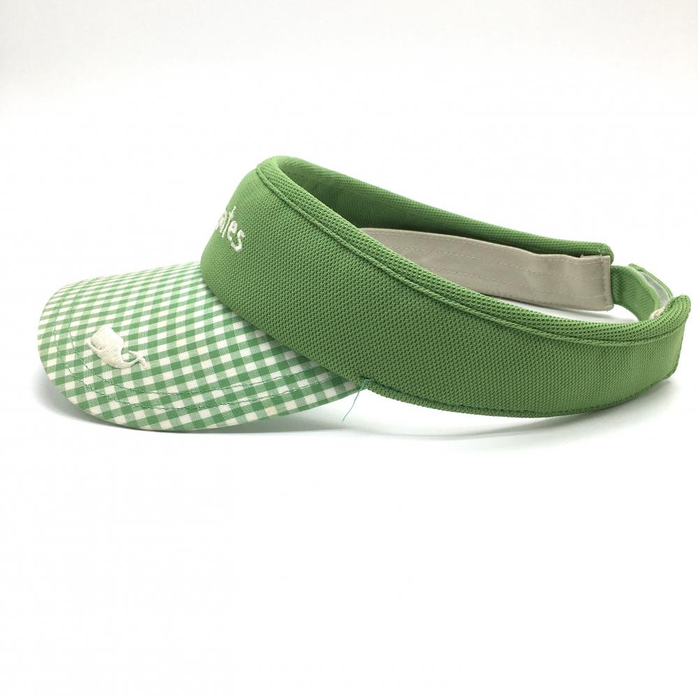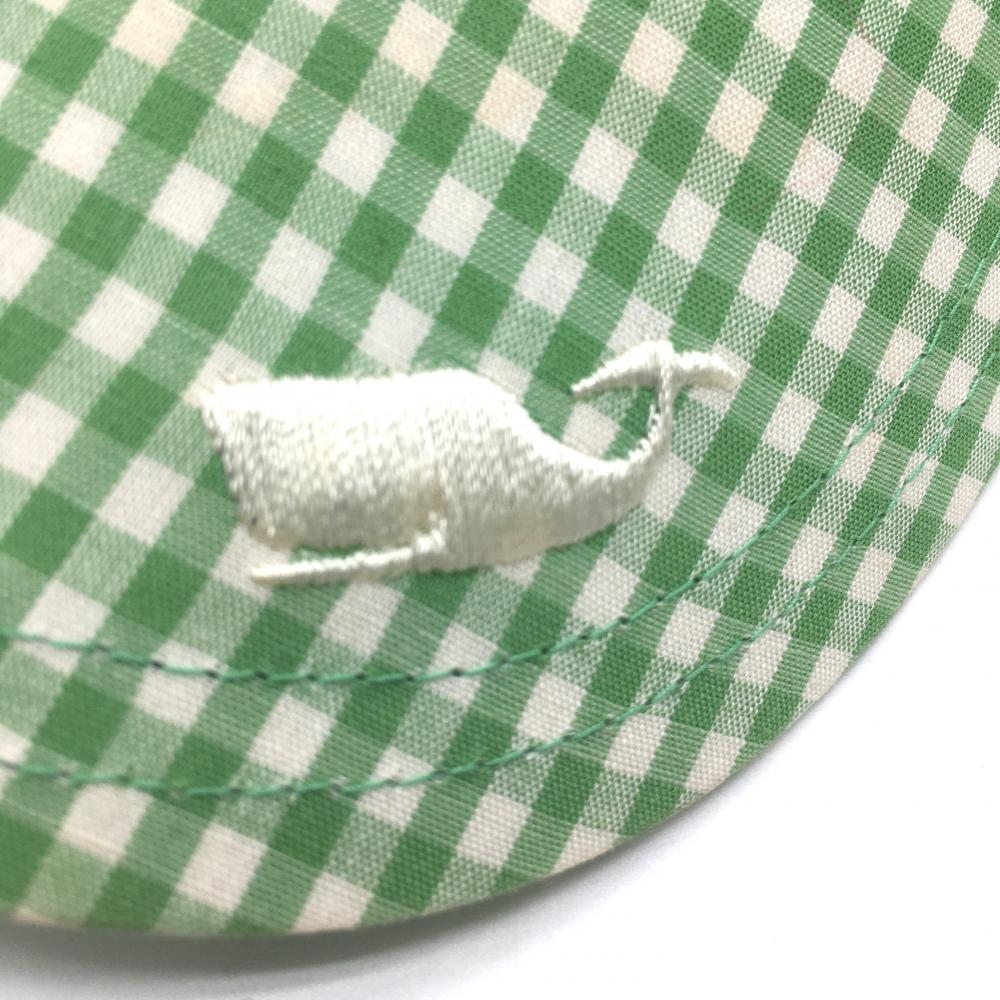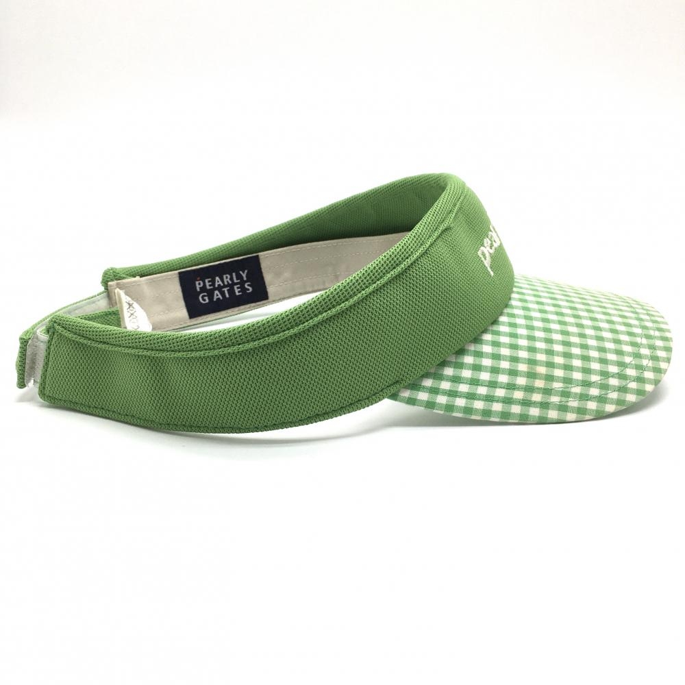 パーリーゲイツ サンバイザー ライトグリーン×白 つばギンガムチェック クジラ刺しゅう FR ゴルフウェア PEARLY GATES