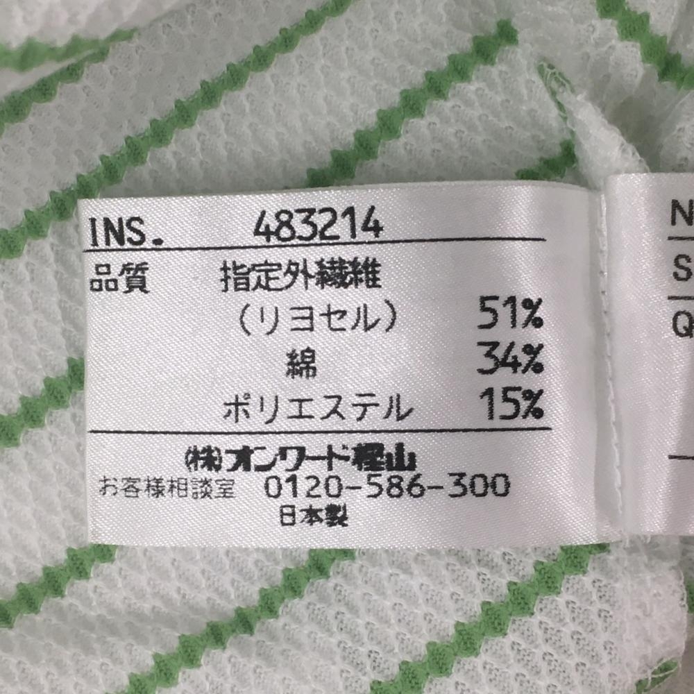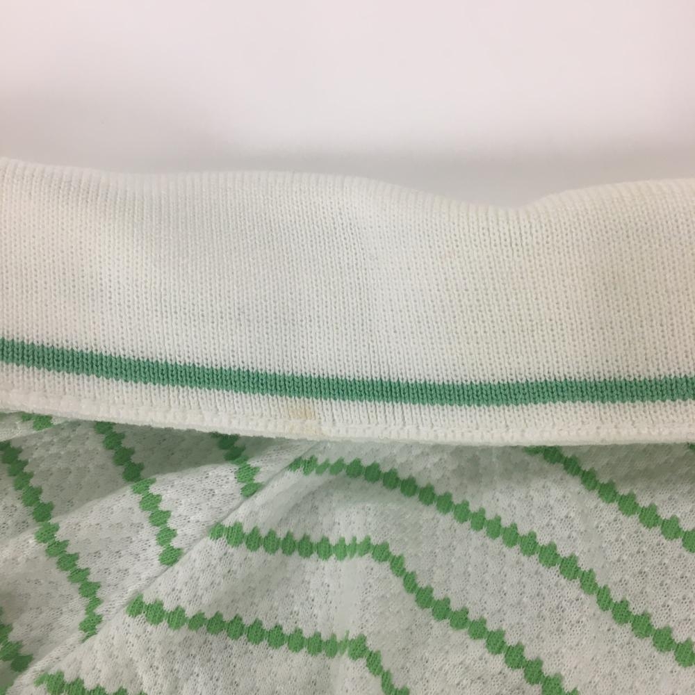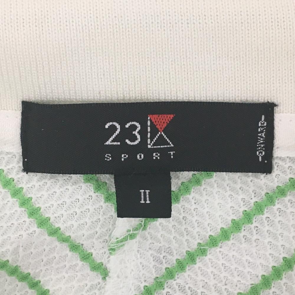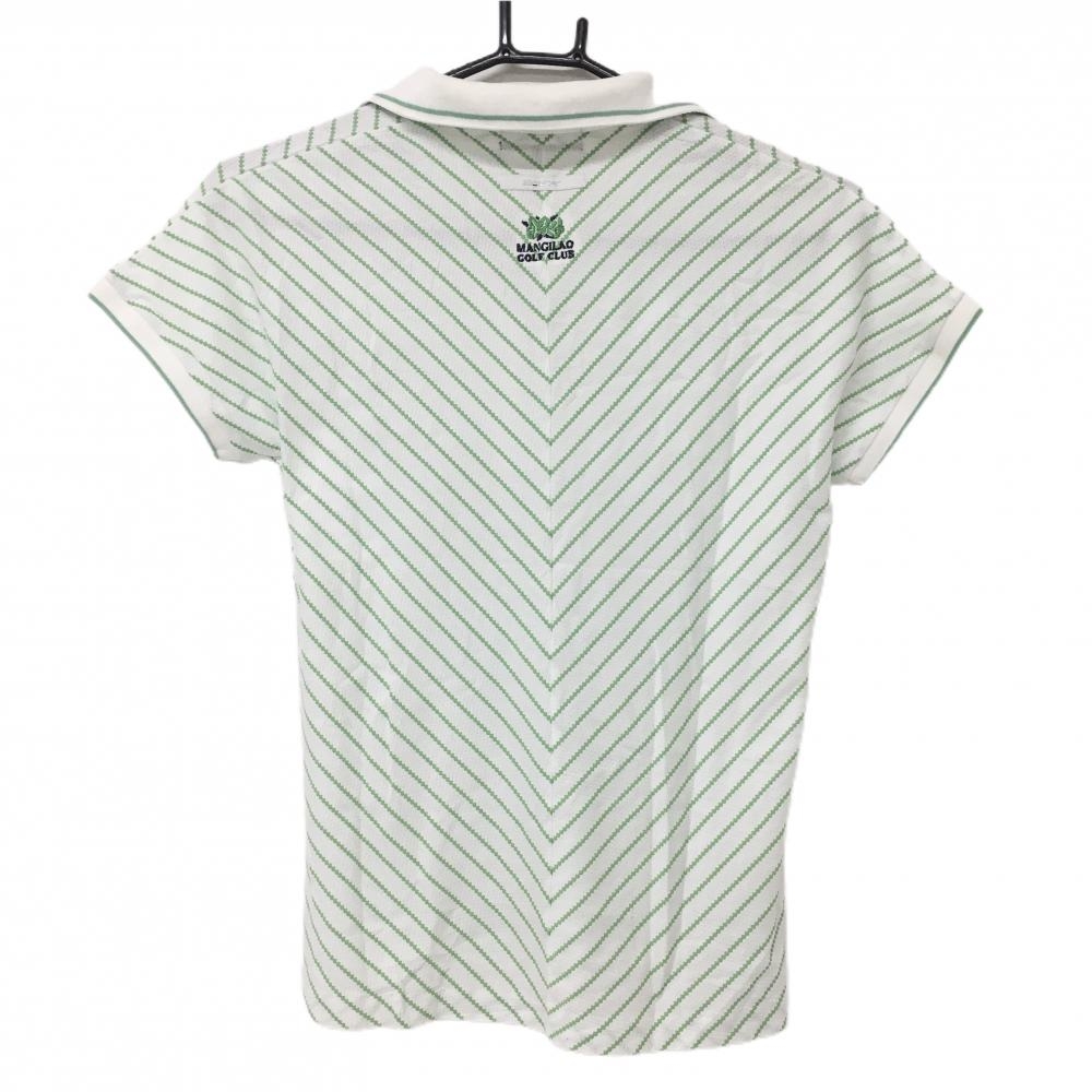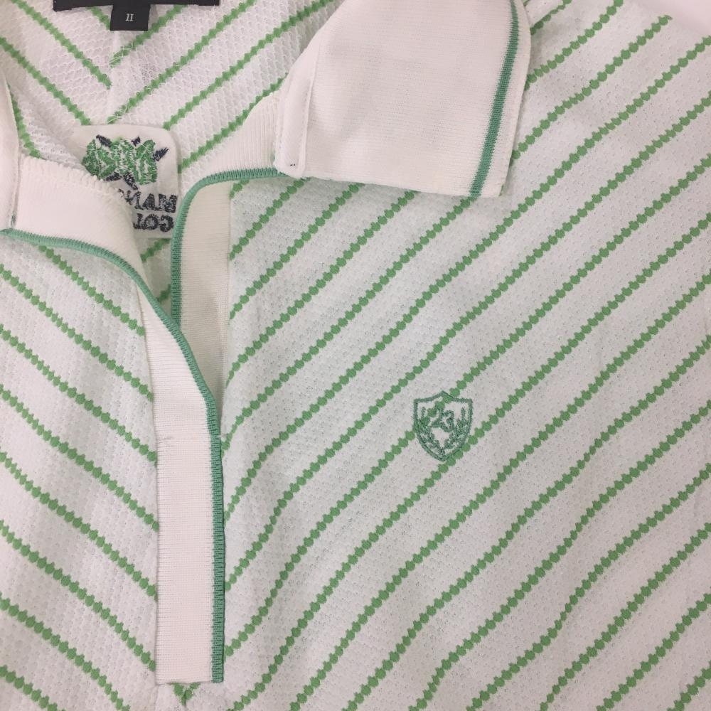 【美品】23区スポーツ 半袖スキッパーシャツ 白×ライトグリーン 斜めストライプ MANGILAO GOLF CLUB レディース Ⅱ(L) ゴルフウェア 23区