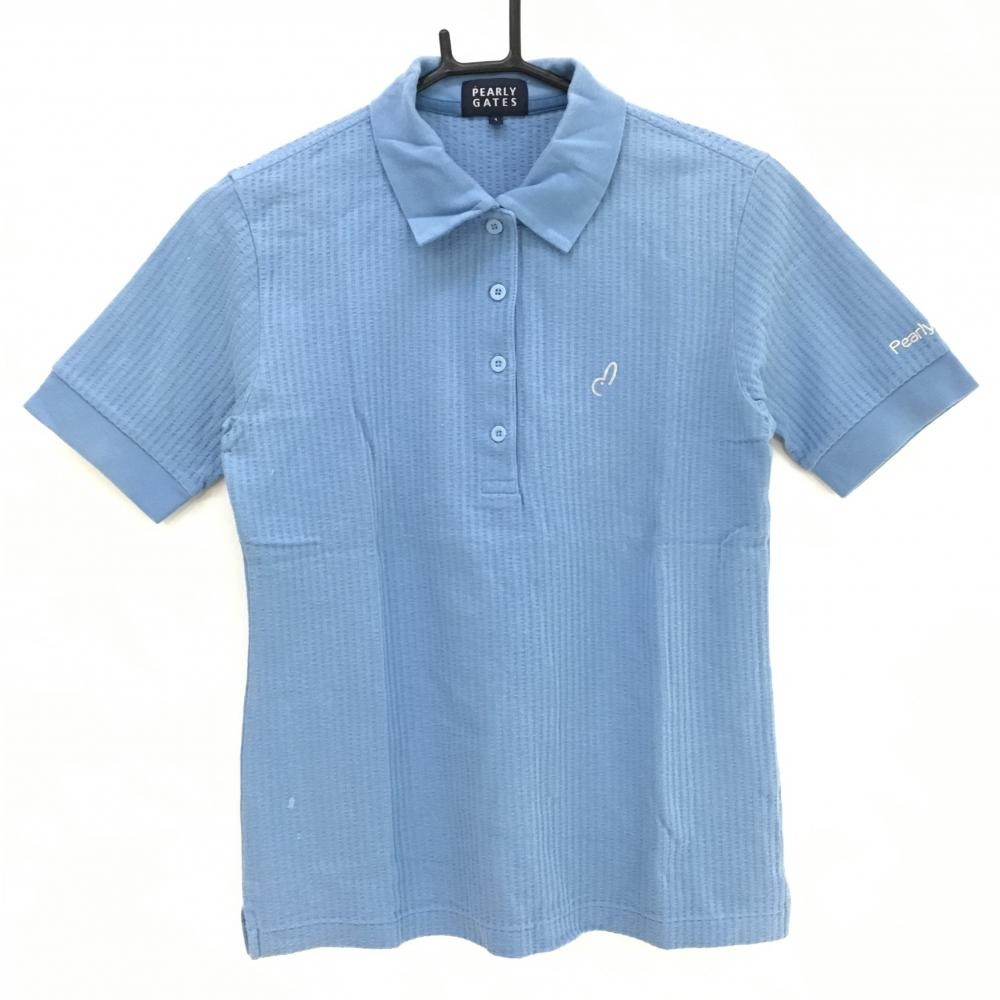 パーリーゲイツ 半袖ポロシャツ ライトブルー ストライプ織生地 コットン100% レディース 1(M) ゴルフウェア PEARLY GATES