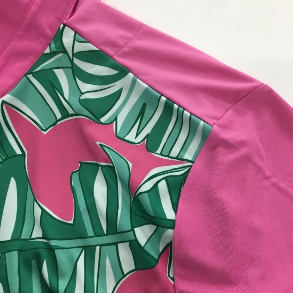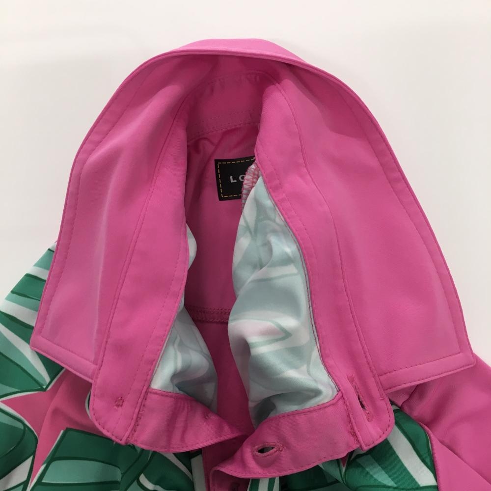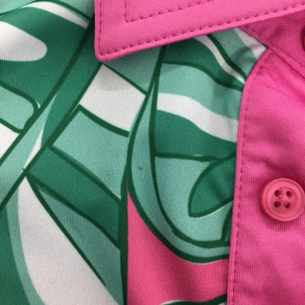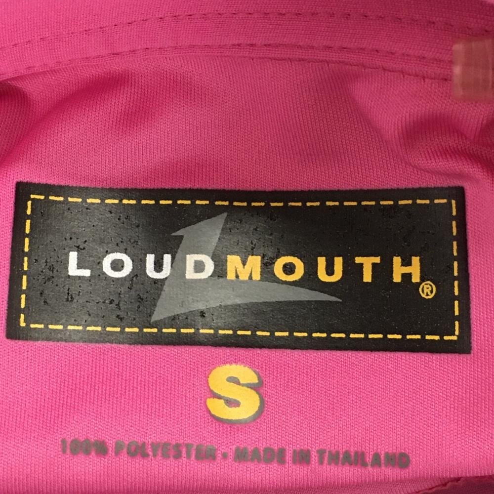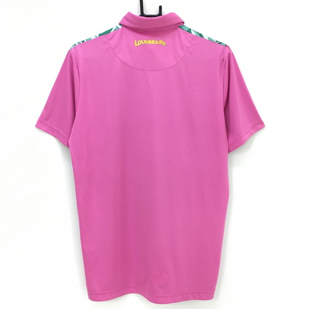 【美品】ラウドマウス 半袖ポロシャツ ピンク×グリーン 前面リーフ柄 メンズ S ゴルフウェア LOUDMOUTH