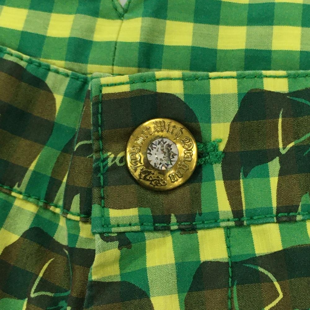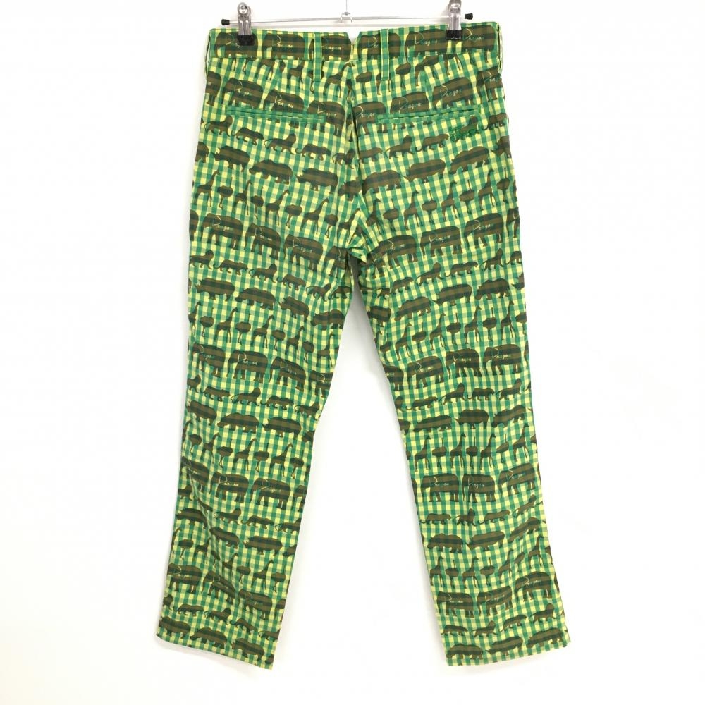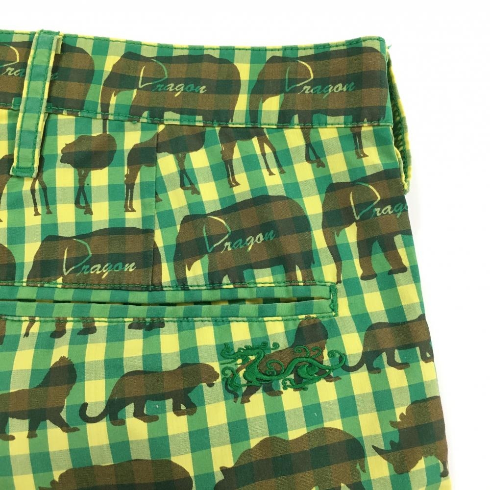 ダンスウィズドラゴン パンツ グリーン×イエロー チェック アニマル総柄 裾汚れ メンズ 2(M) ゴルフウェア Dance With Dragon