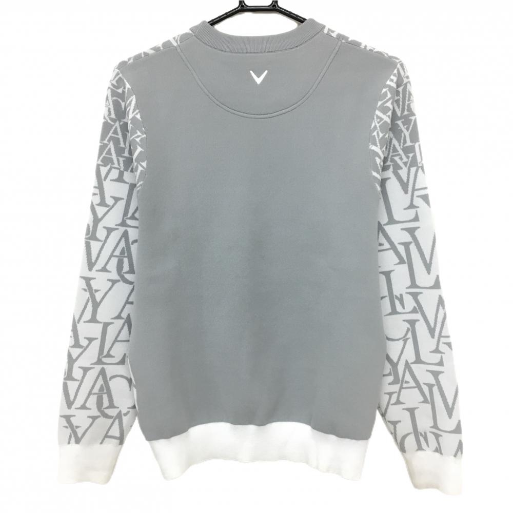 キャロウェイ セーター グレー×白 前面ロゴ総柄 ニット メンズ M ゴルフウェア 2023年モデル Callaway