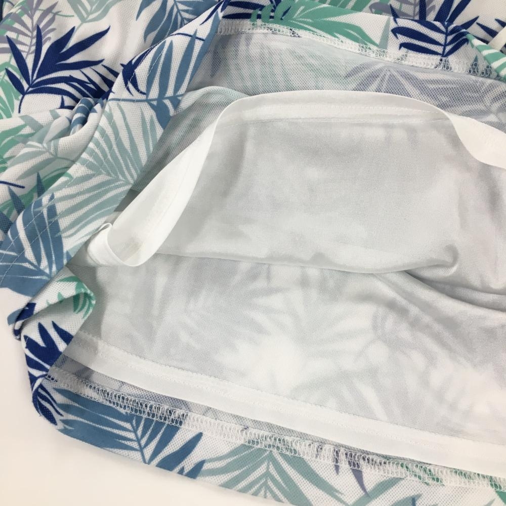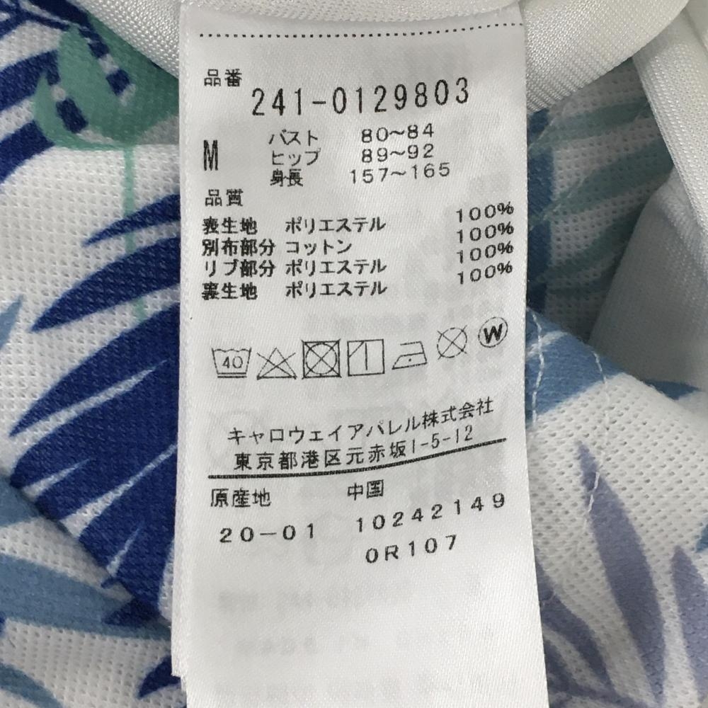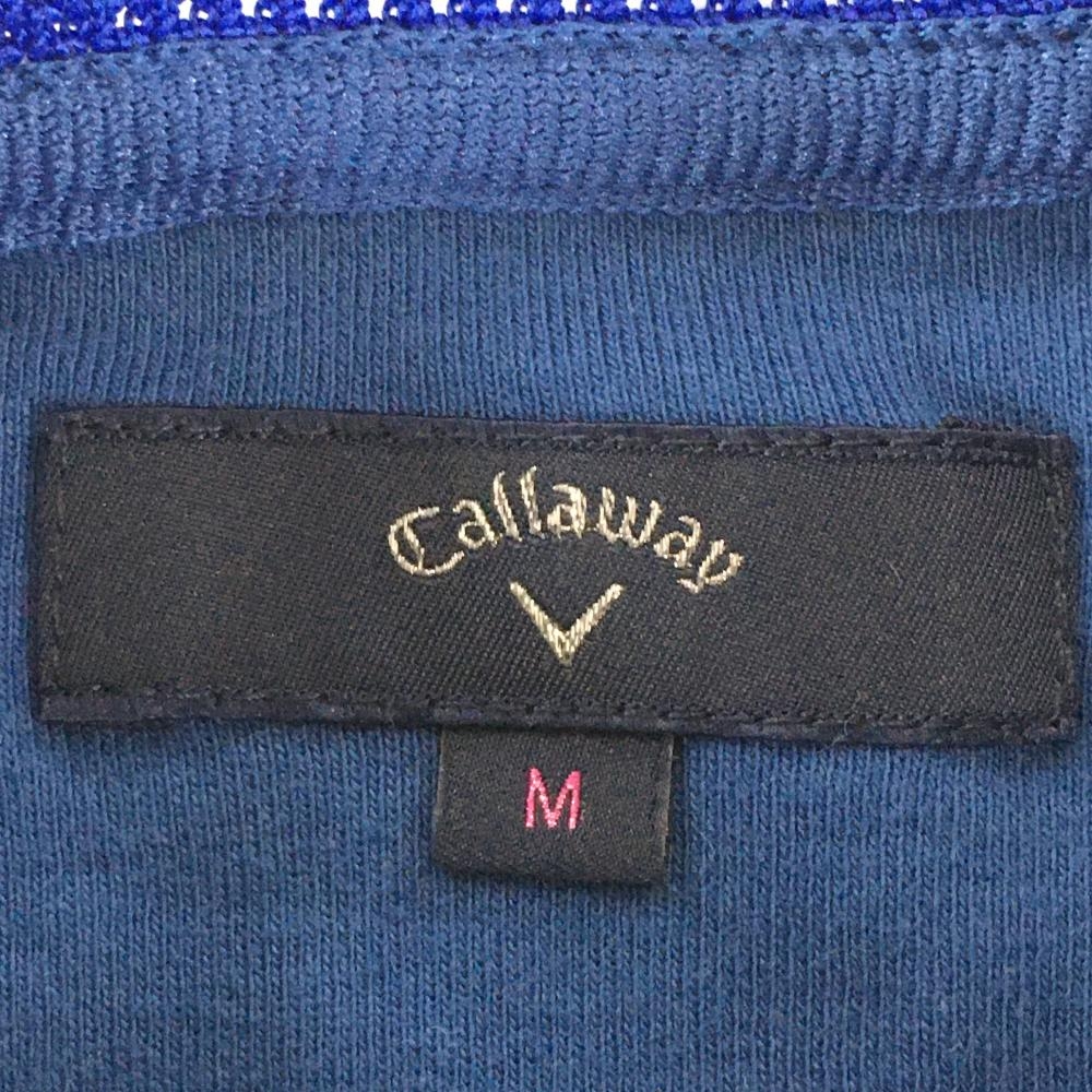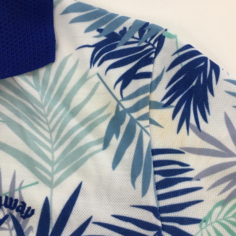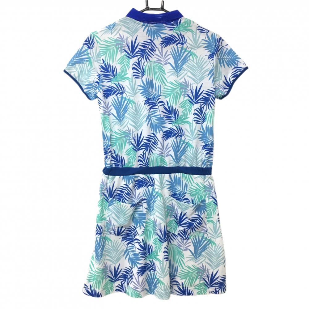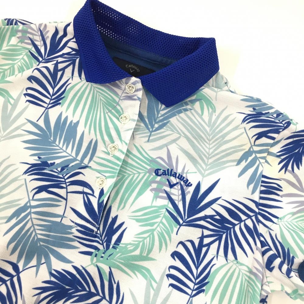 キャロウェイ 半袖ポロワンピース 白×ブルー リーフ柄 襟メッシュ 裏地付 レディース M ゴルフウェア Callaway