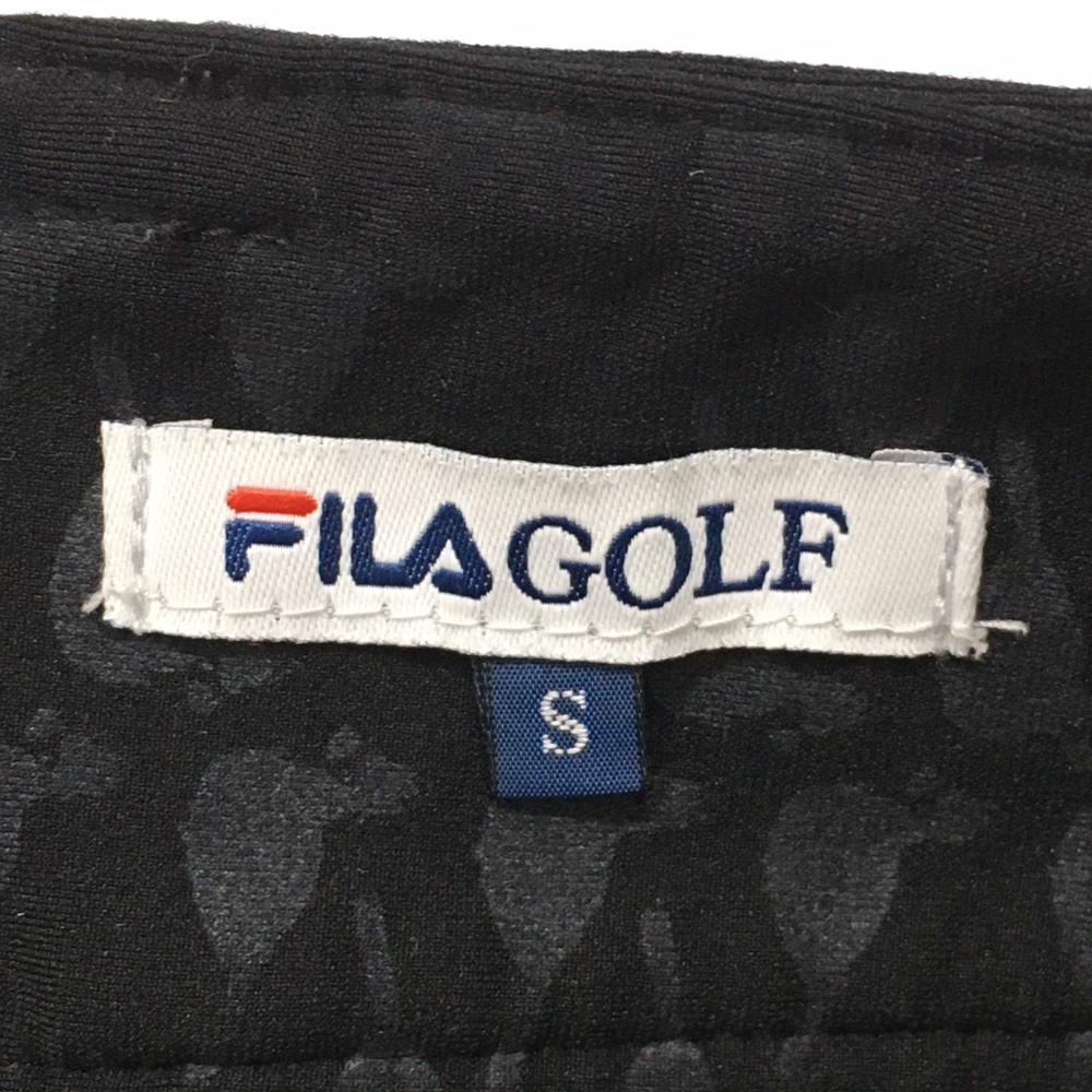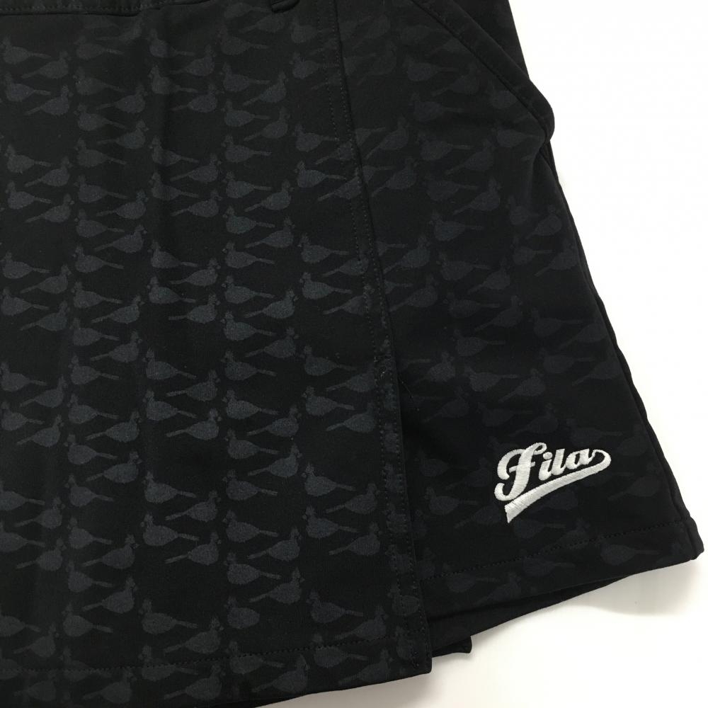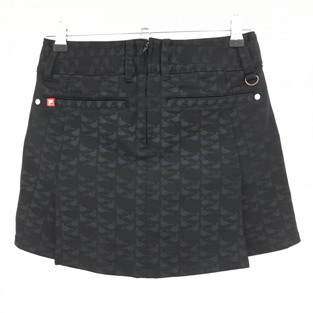 【超美品】フィラゴルフ ストレッチスカート 黒×グレー 鳥柄 裏微起毛 ティー装着可 レディース S ゴルフウェア FILA GOLF
