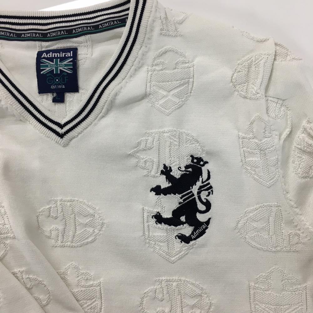 アドミラル セーター 白×ネイビー エンブレム総柄 Vネック メンズ L ゴルフウェア Admiral