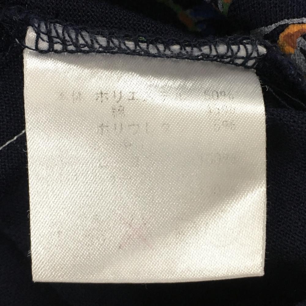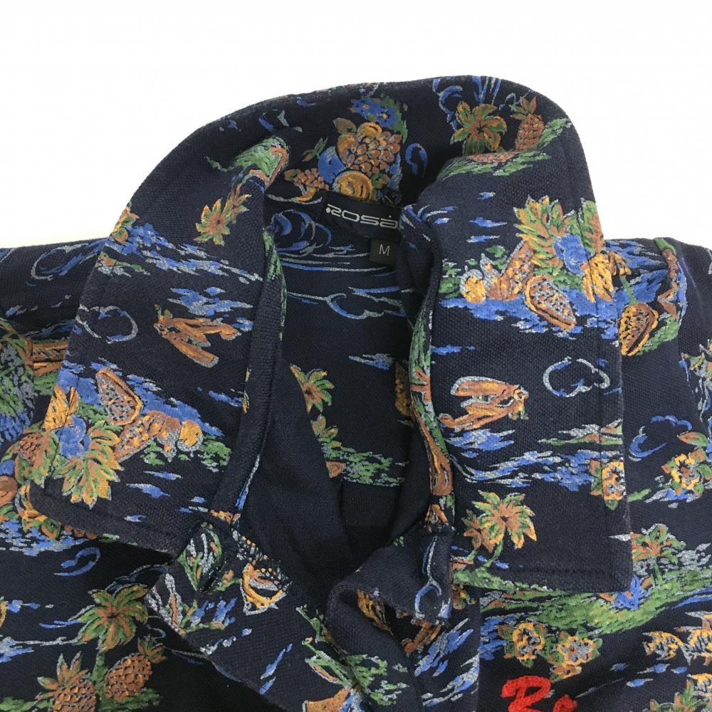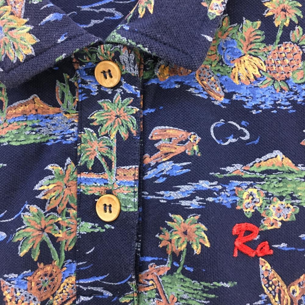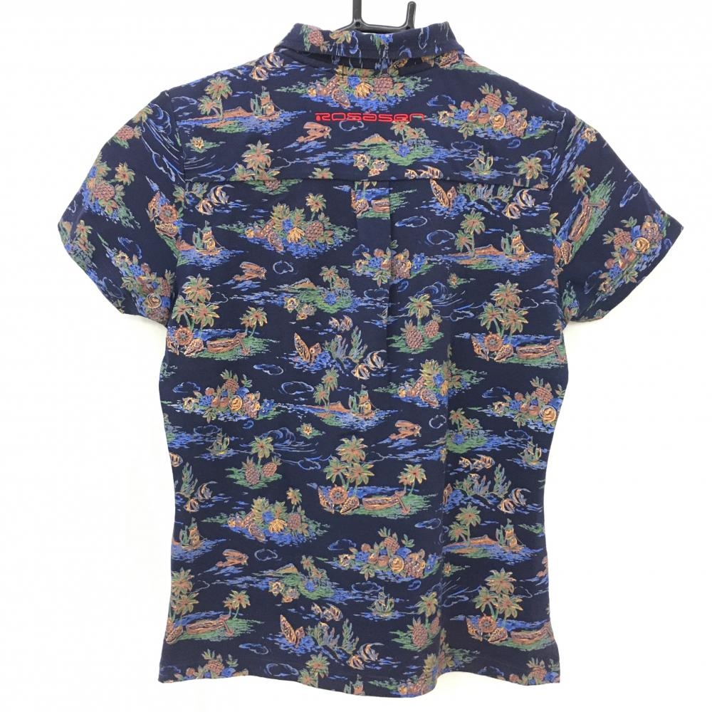 ロサーセン 半袖ポロシャツ ネイビー×ブラウン トロピカル総柄 胸刺しゅう レディース M ゴルフウェア Rosasen