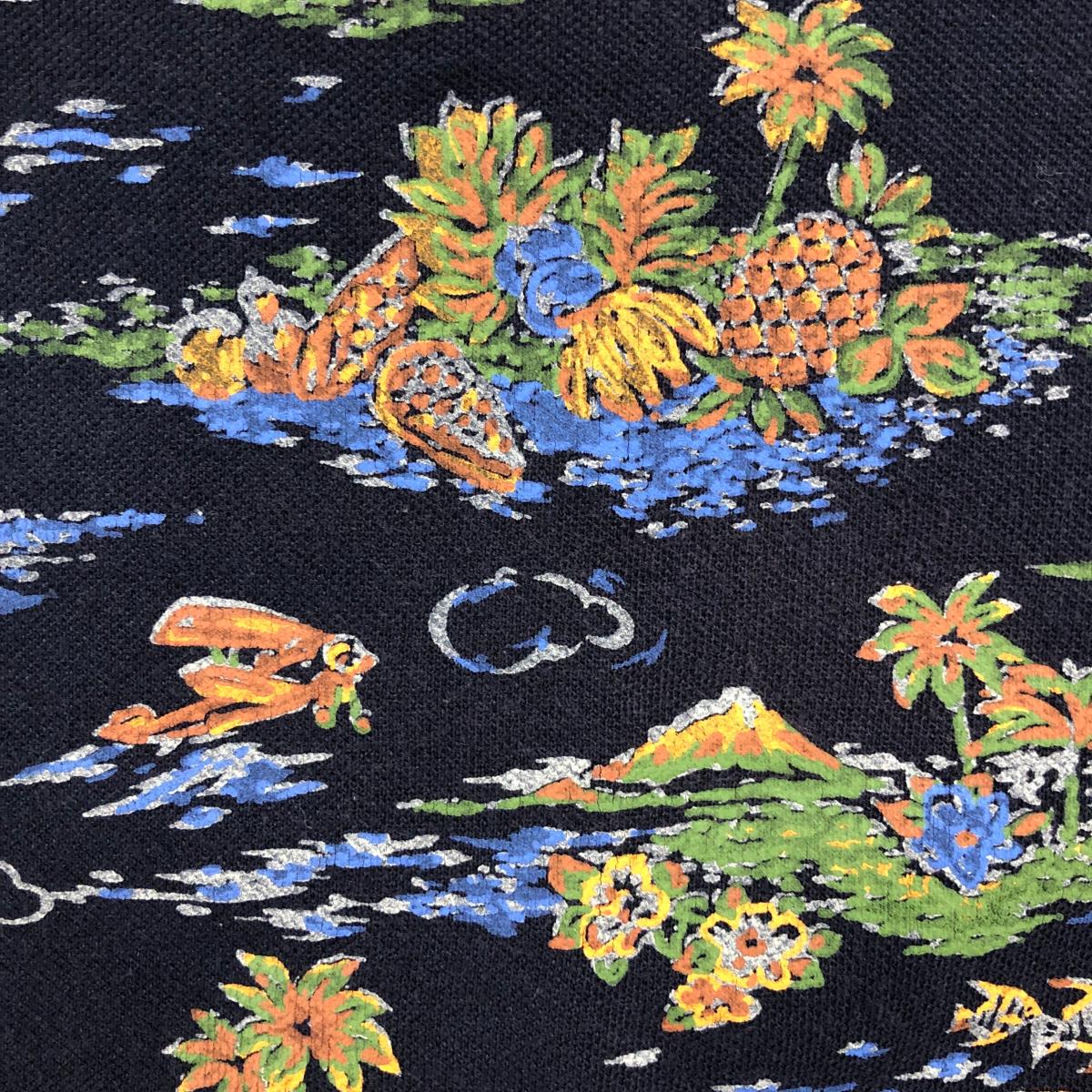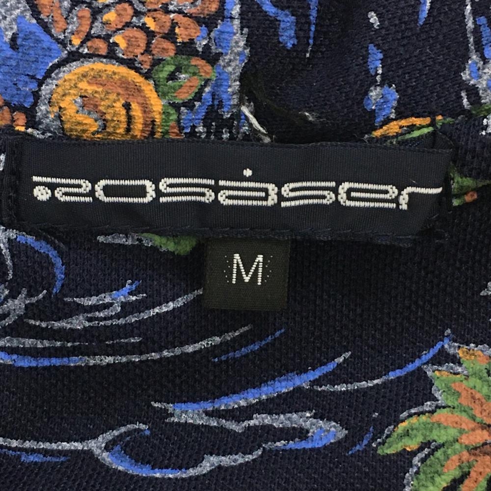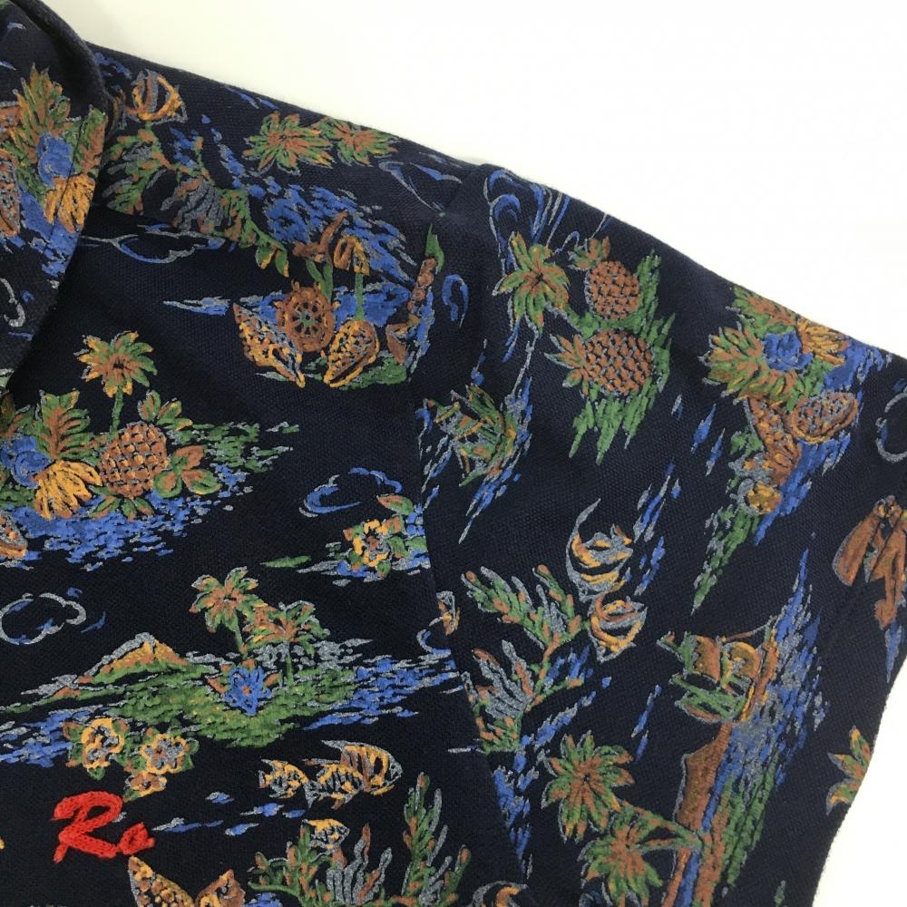ロサーセン 半袖ポロシャツ ネイビー×ブラウン トロピカル総柄 胸刺しゅう レディース M ゴルフウェア Rosasen