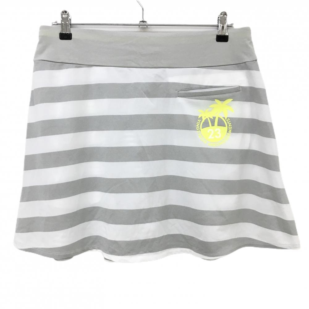 【超美品】23区ゴルフ スカート グレー×白 ボーダー ヤシの木 レディース Ⅲ(XL) ゴルフウェア 23区