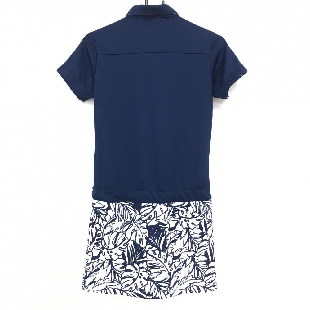 【美品】エピキュールゴルフ 半袖ポロワンピース ネイビー×白 スカート部リーフ柄 レディース M ゴルフウェア EPICURE GOLF