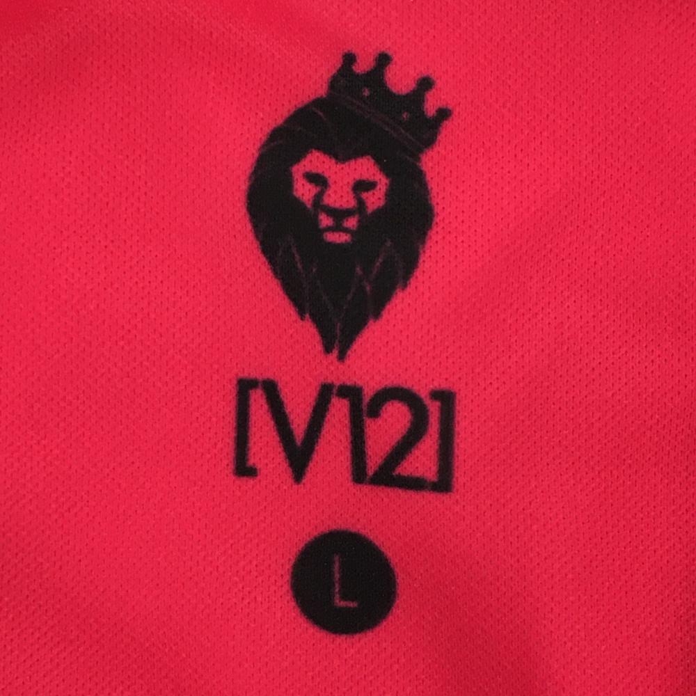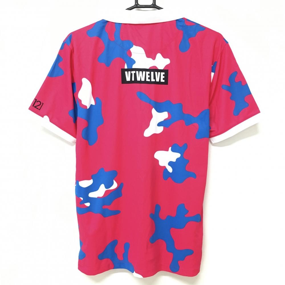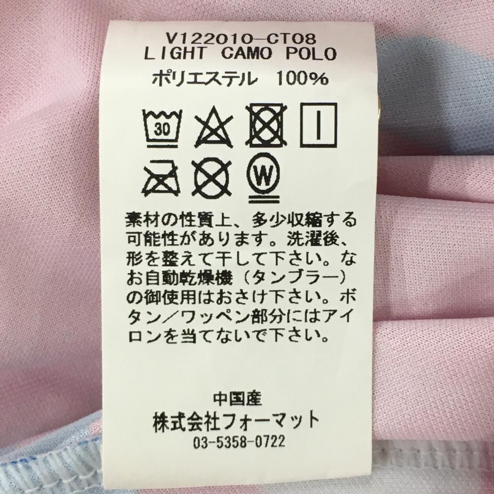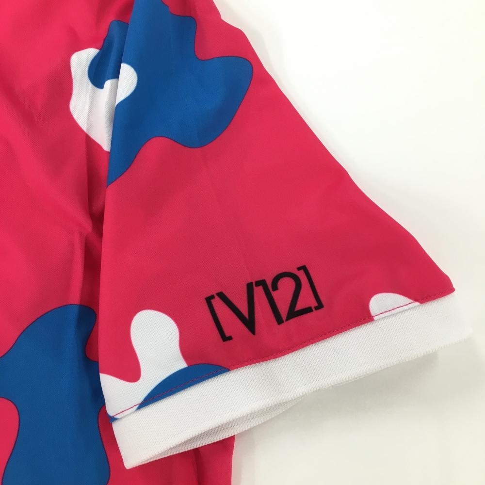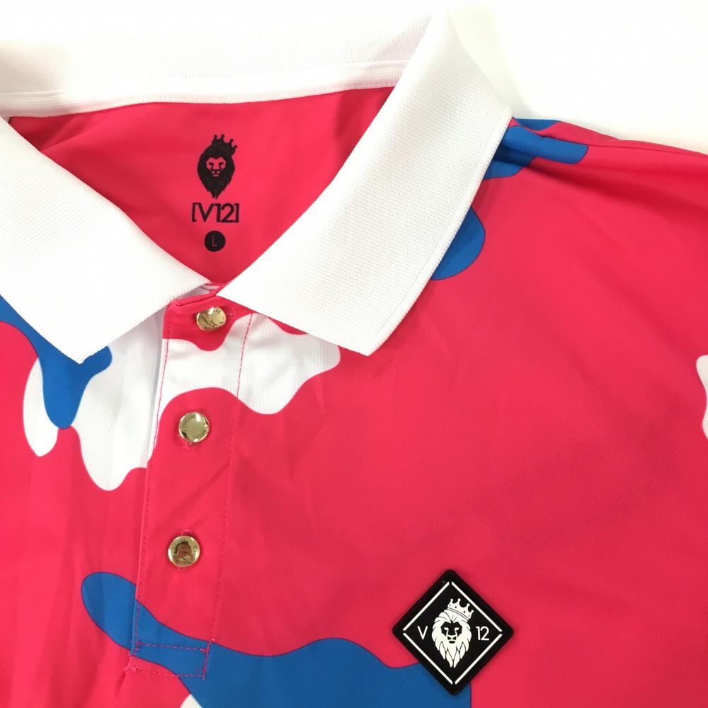 【超美品】ヴィトゥエルヴ 半袖ポロシャツ ピンク×ブルー×白 総柄 シリコンロゴ メンズ L ゴルフウェア V12