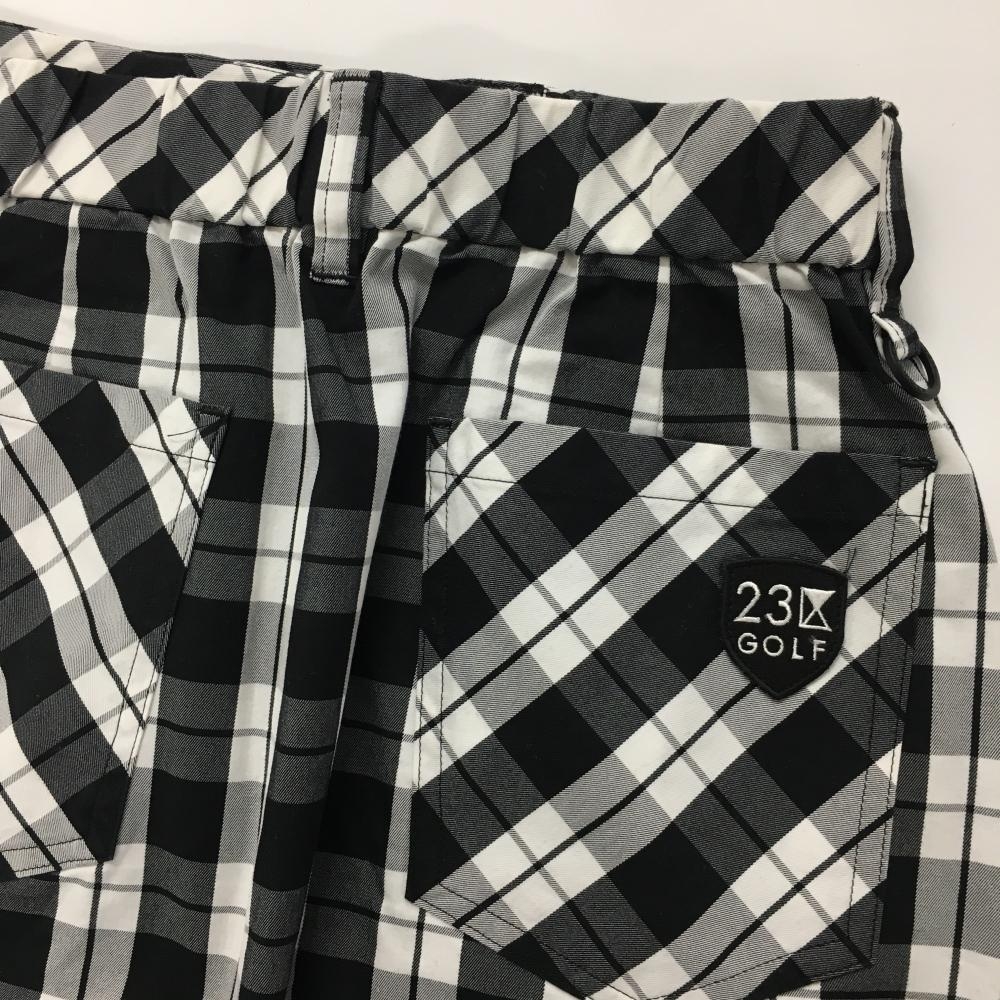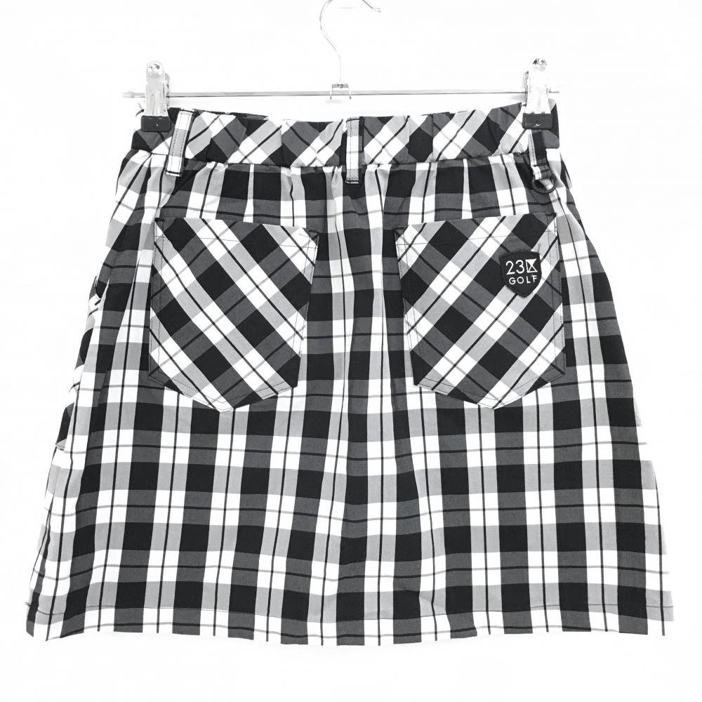 【美品】23区ゴルフ スカート 白×黒 ボックスチェック ウエストゴム レディース I(M) ゴルフウェア 23区