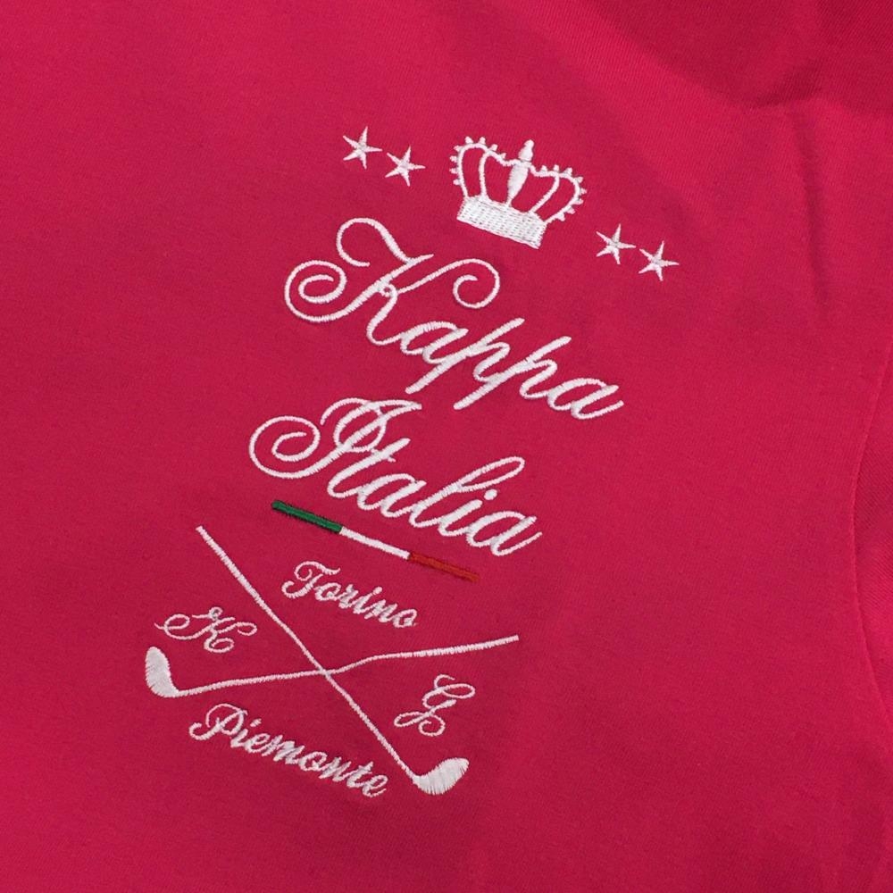 【美品】カッパ 長袖ハイネックシャツ ピンク×白 クラウン刺しゅう レディース M ゴルフウェア Kappa