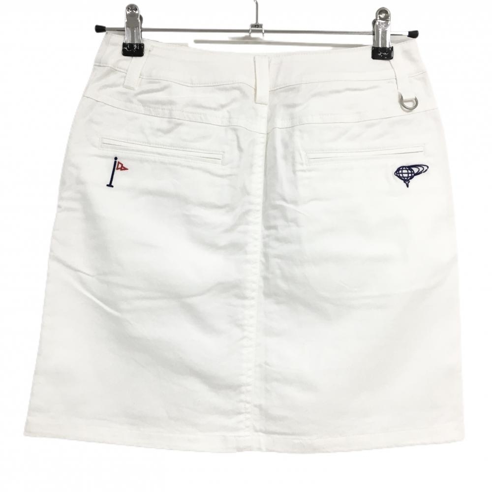 【超美品】ビームスゴルフ スカート 白×ネイビー ポケット口刺しゅう レディース S ゴルフウェア BEAMS GOLF