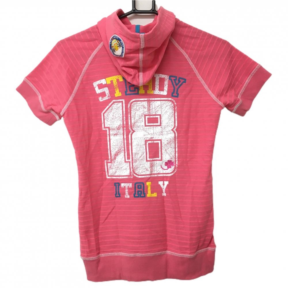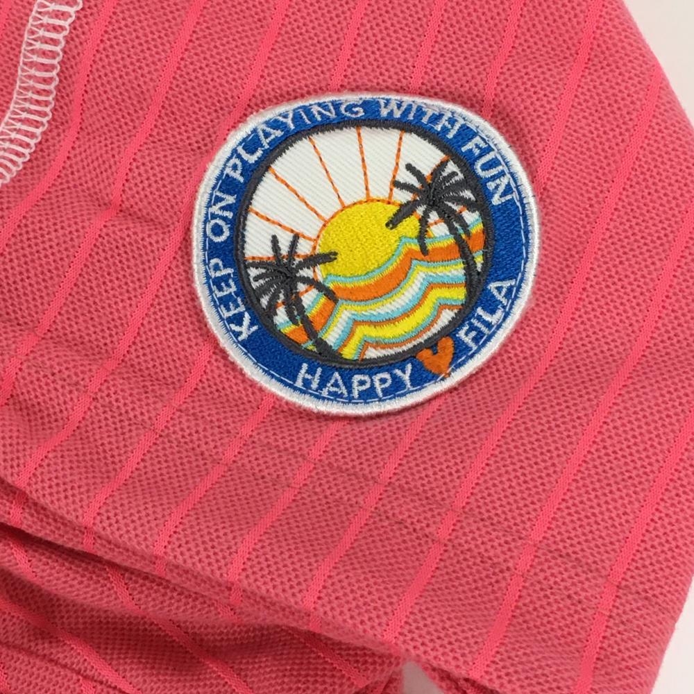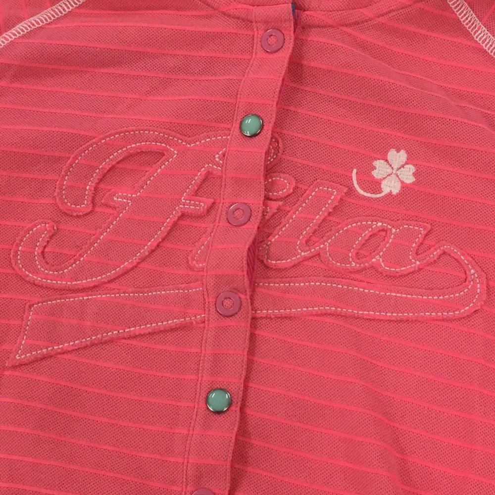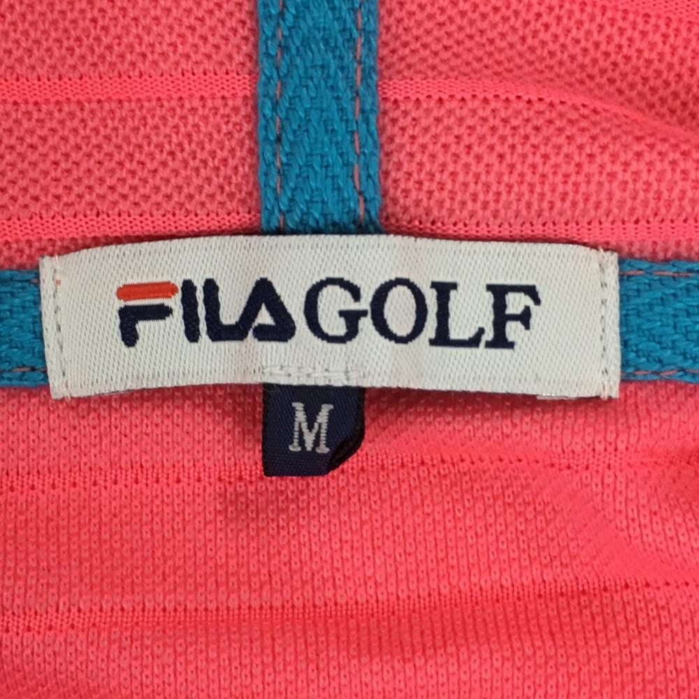 【美品】フィラゴルフ フード付き半袖シャツ ピンク×白 ボーダー柄 レディース M ゴルフウェア FILA GOLF
