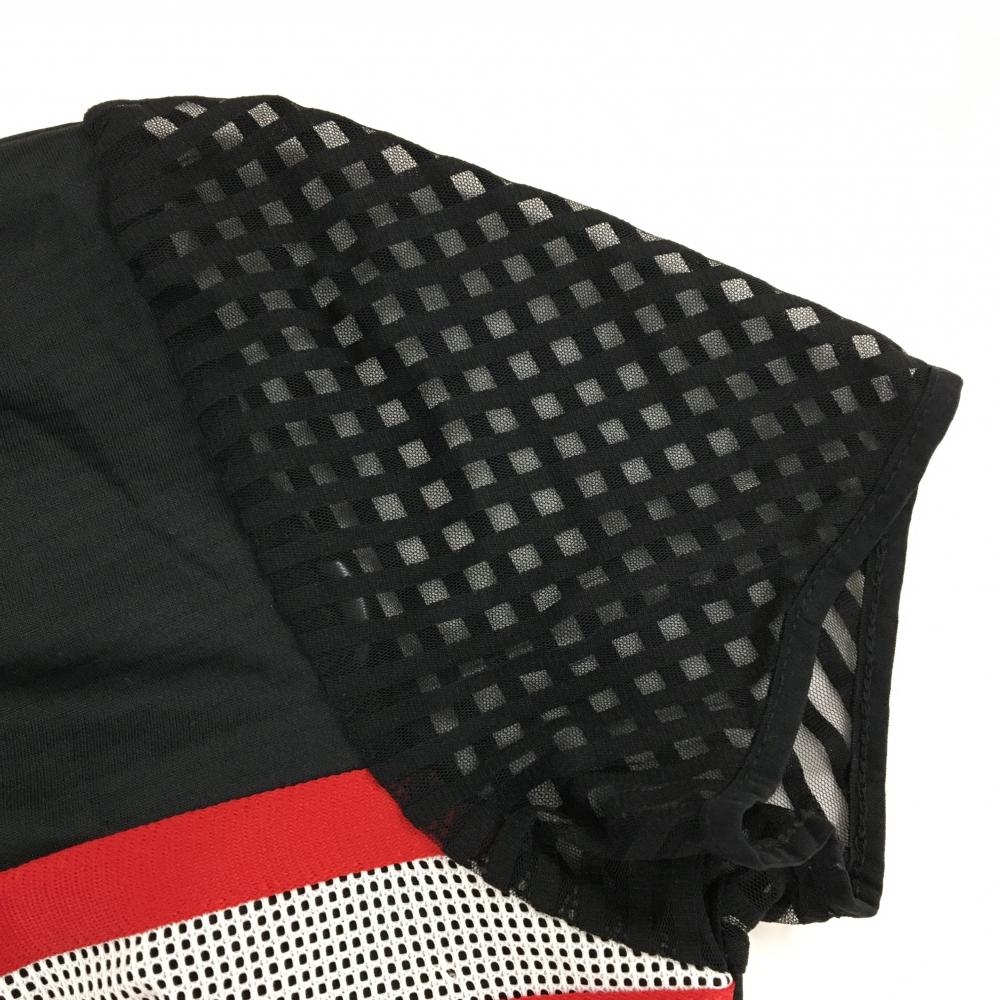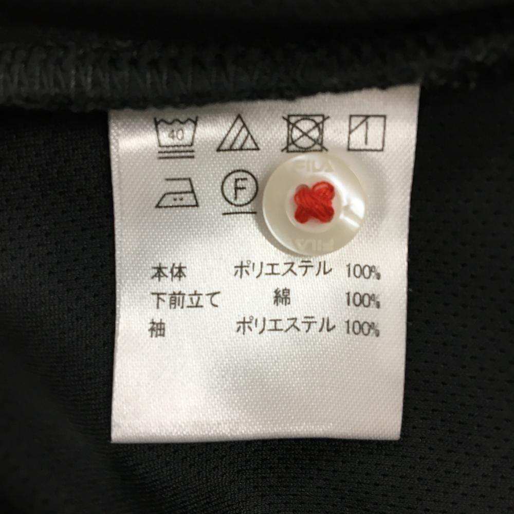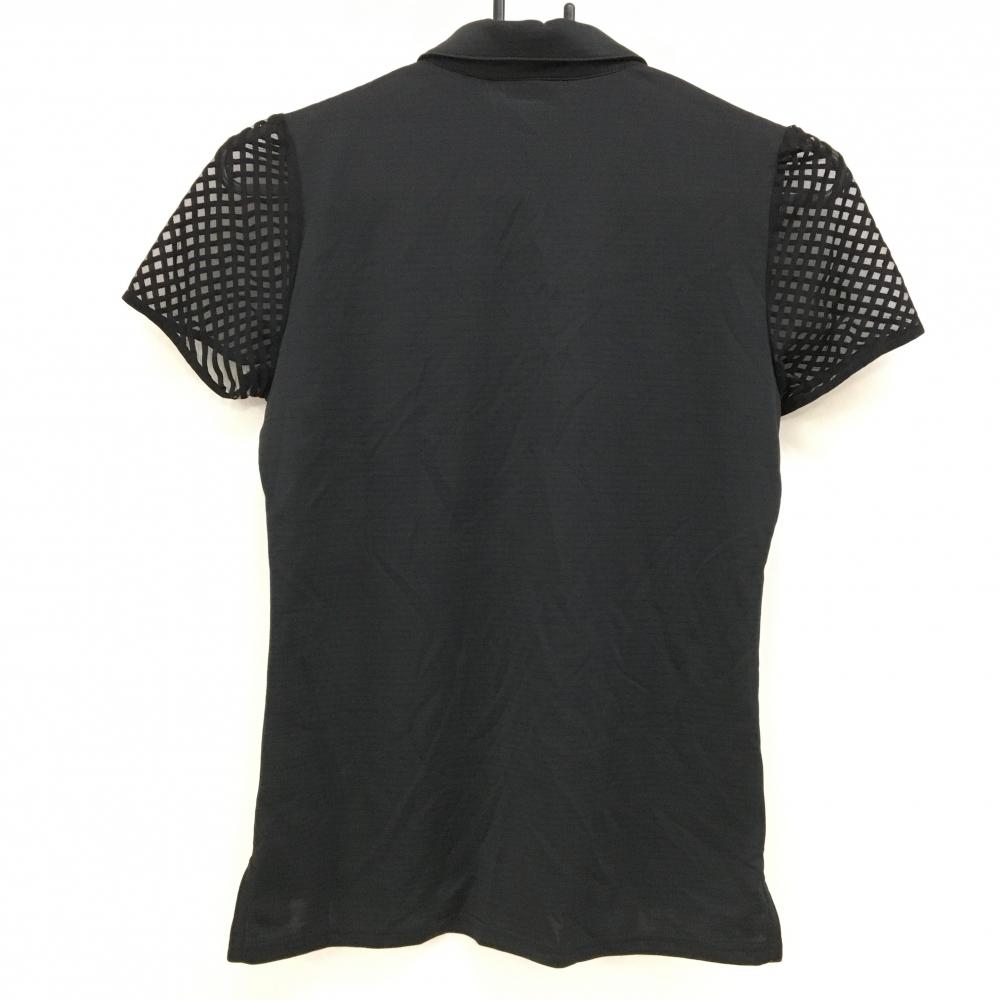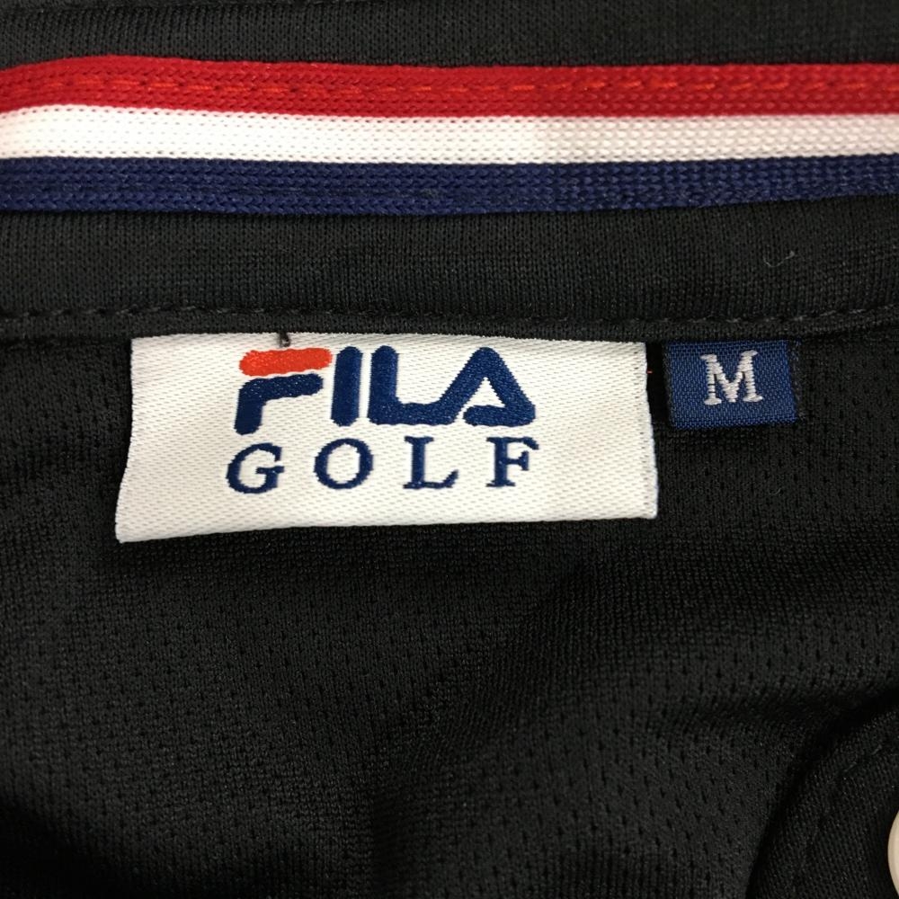 【超美品】フィラゴルフ 半袖ポロシャツ 黒×レッド ボーダー織生地 ロゴ刺しゅう 袖シースルー レディース M ゴルフウェア FILA GOLF