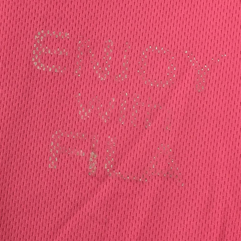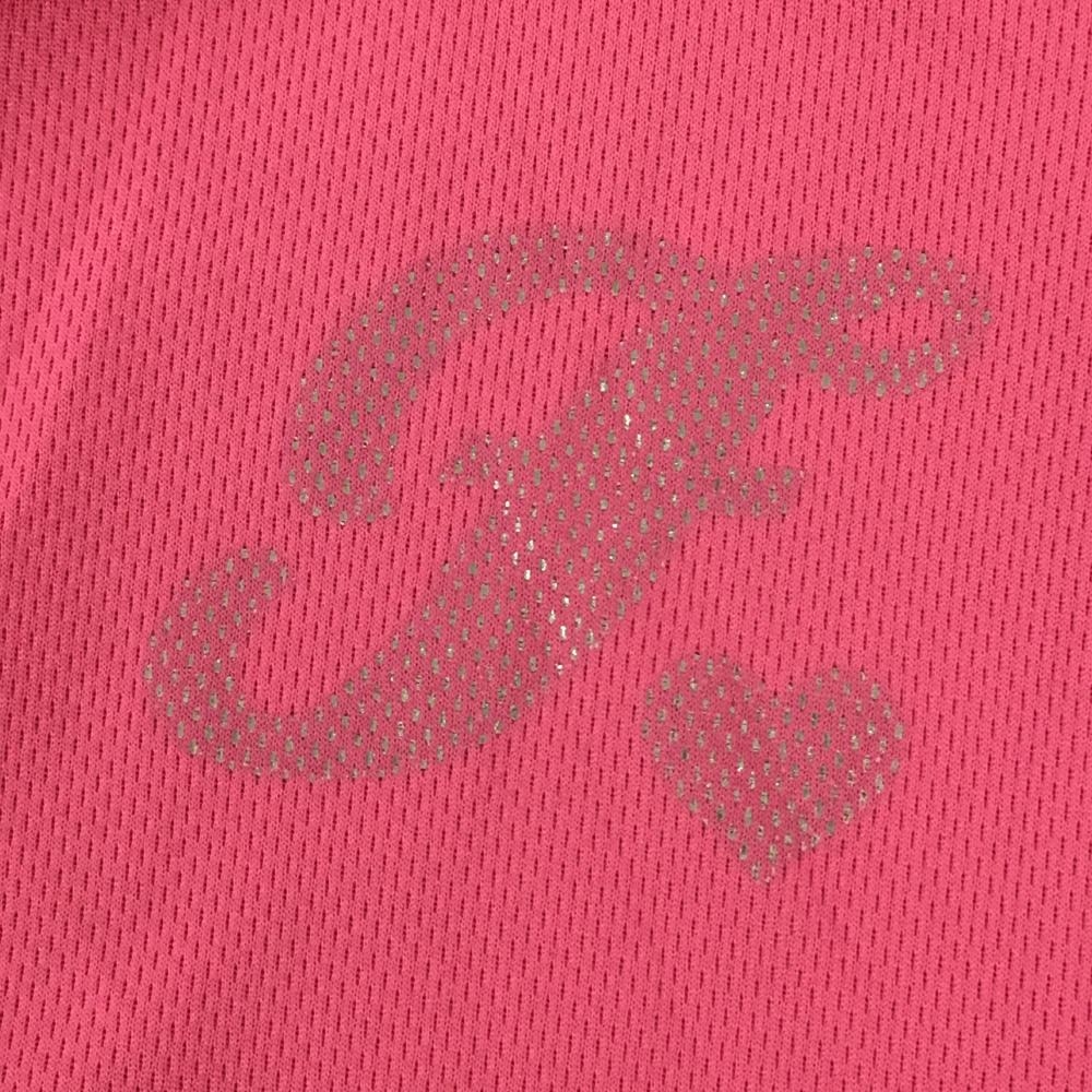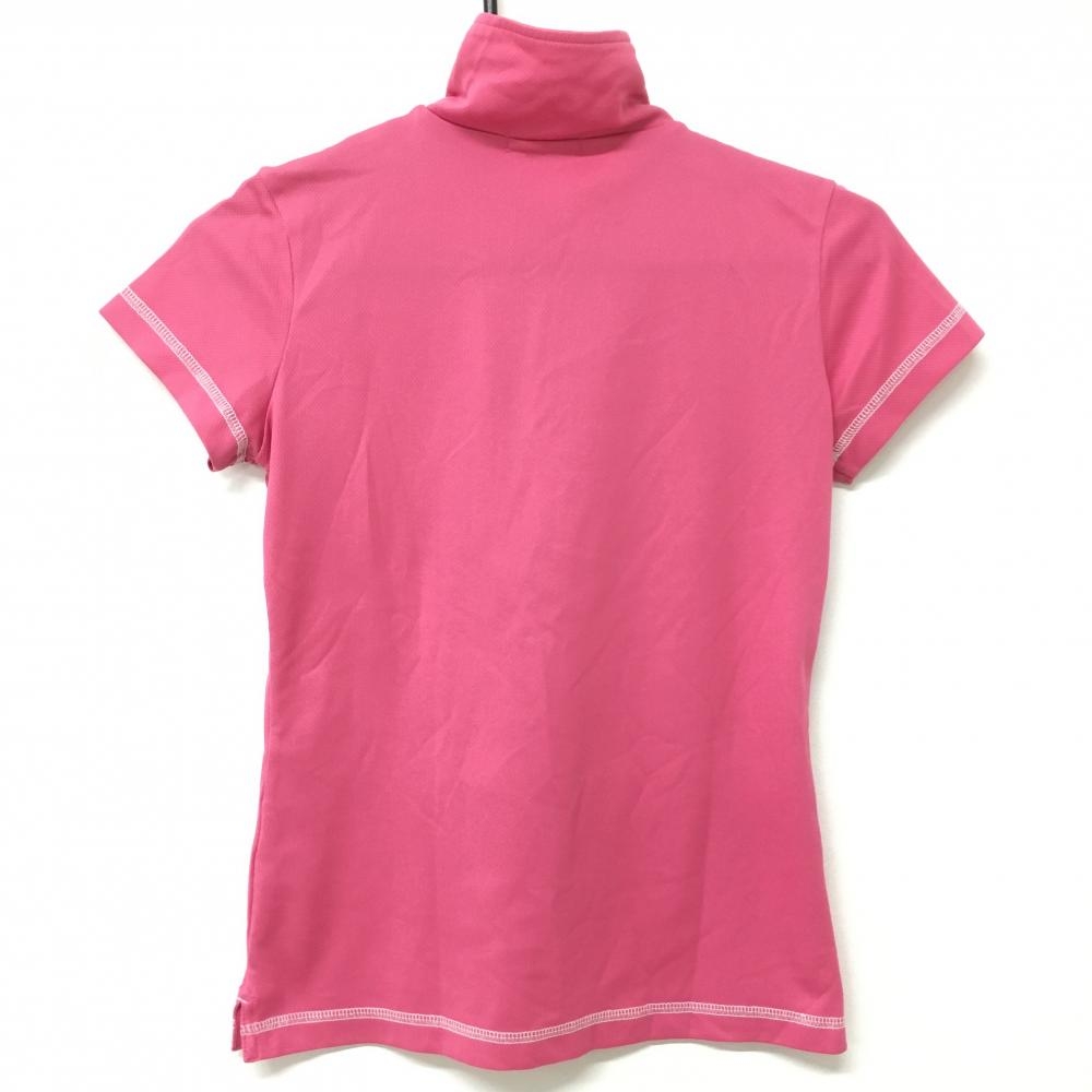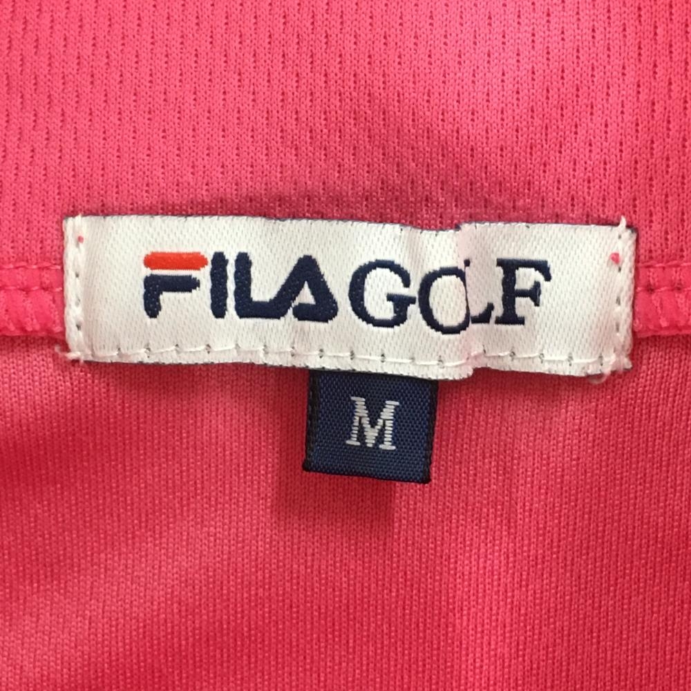 フィラゴルフ 半袖ハイネックシャツ ハーフジップ ピンク×白 織生地 ハーフジップ レディース M ゴルフウェア FILA GOLF