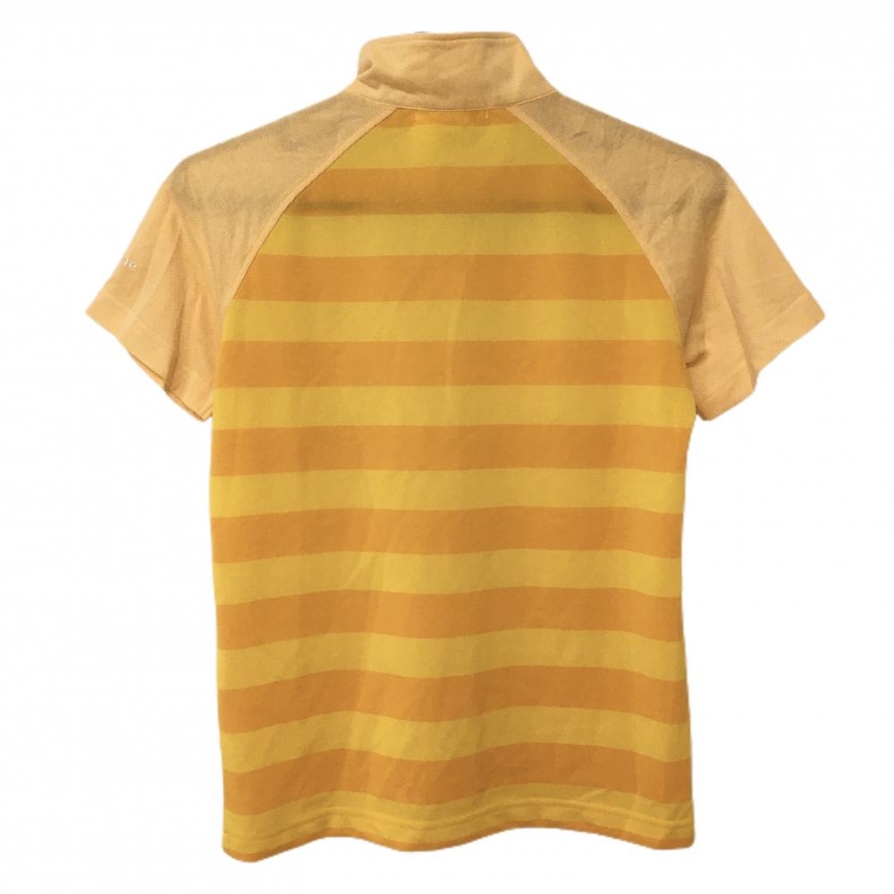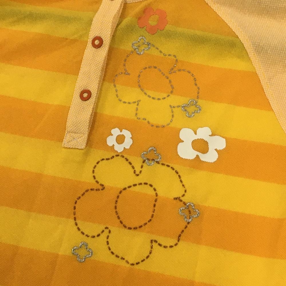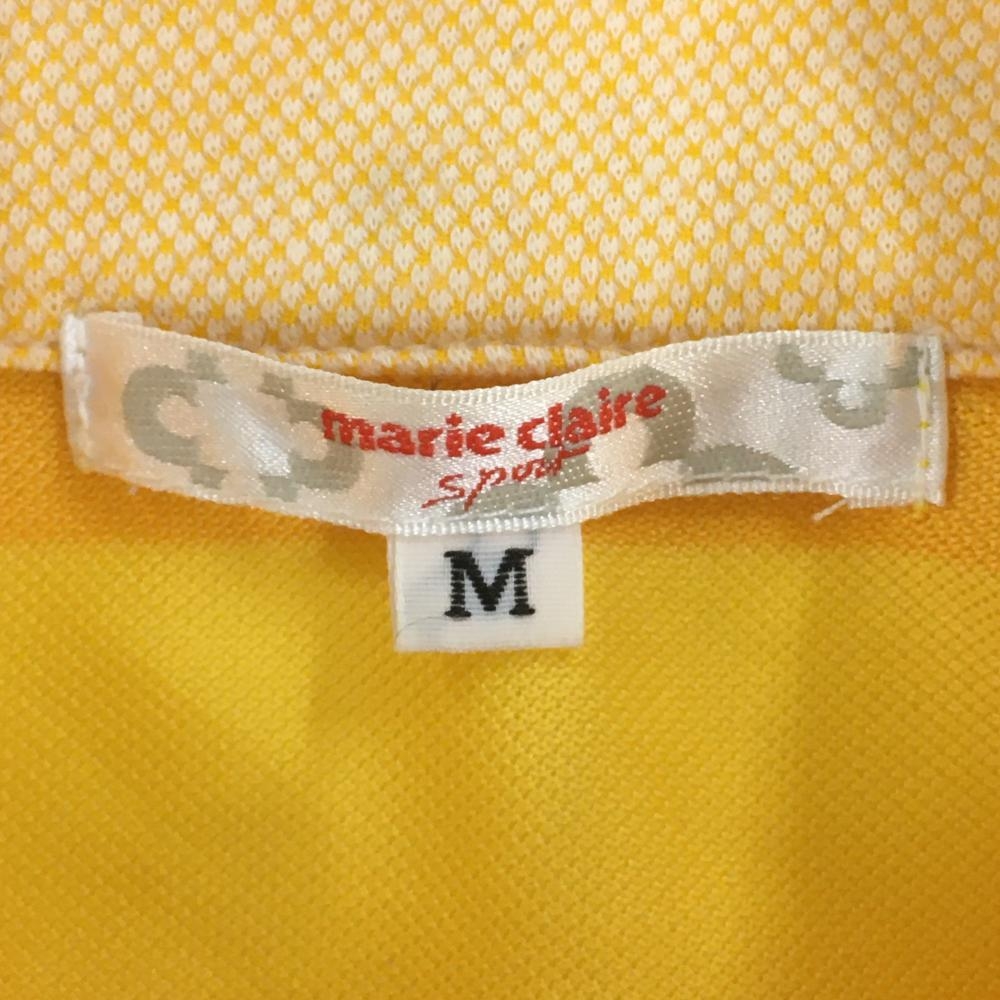 【超美品】マリクレール 半袖ハイネックシャツ オレンジ×イエロー ボーダー柄 花柄 レディース M ゴルフウェア marie claire