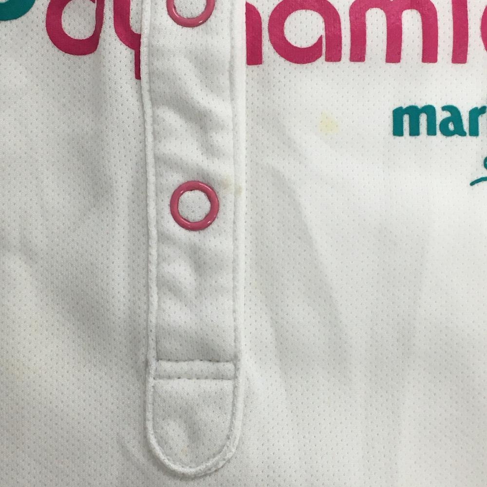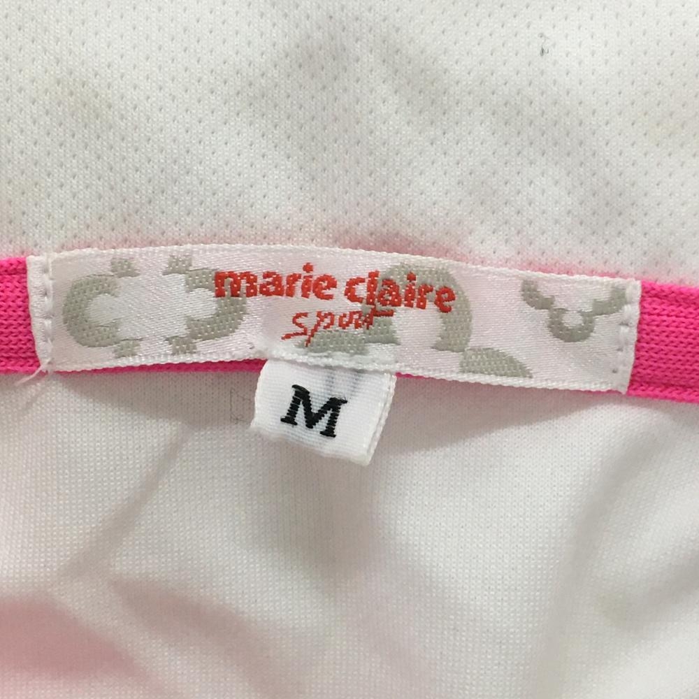 マリクレール 半袖ハイネックシャツ 白×ピンク チュニック スナップボタン レディース M ゴルフウェア marie claire