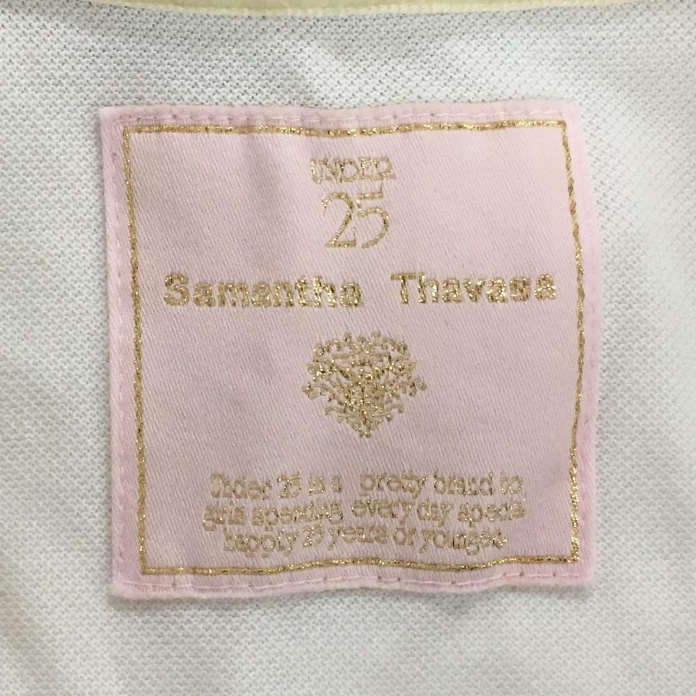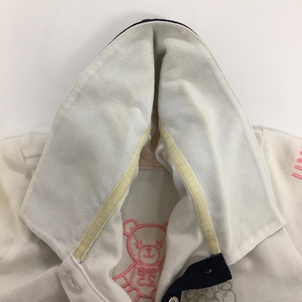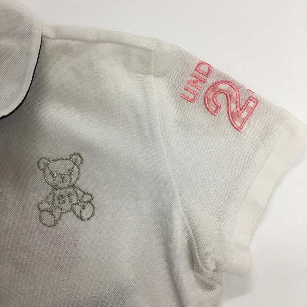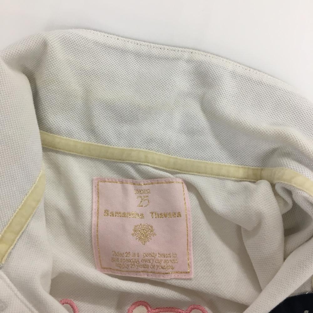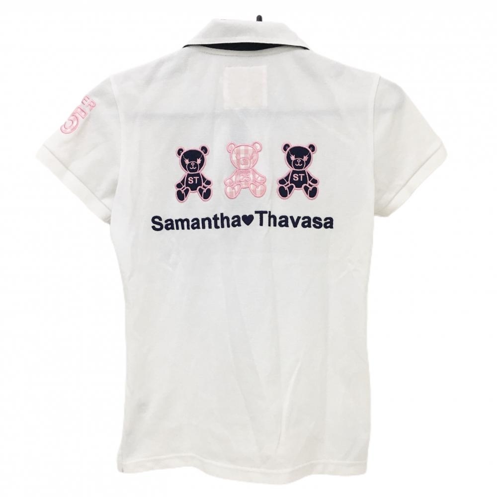 サマンサタバサ UNDER25 半袖ポロシャツ 白×ネイビー ロゴプリント クマ刺しゅう レディース M ゴルフウェア Samantha Thavasa