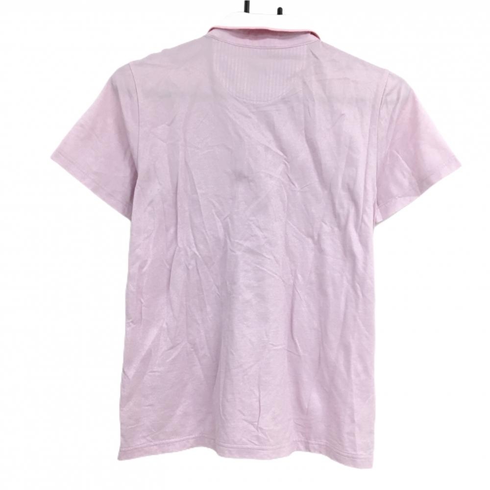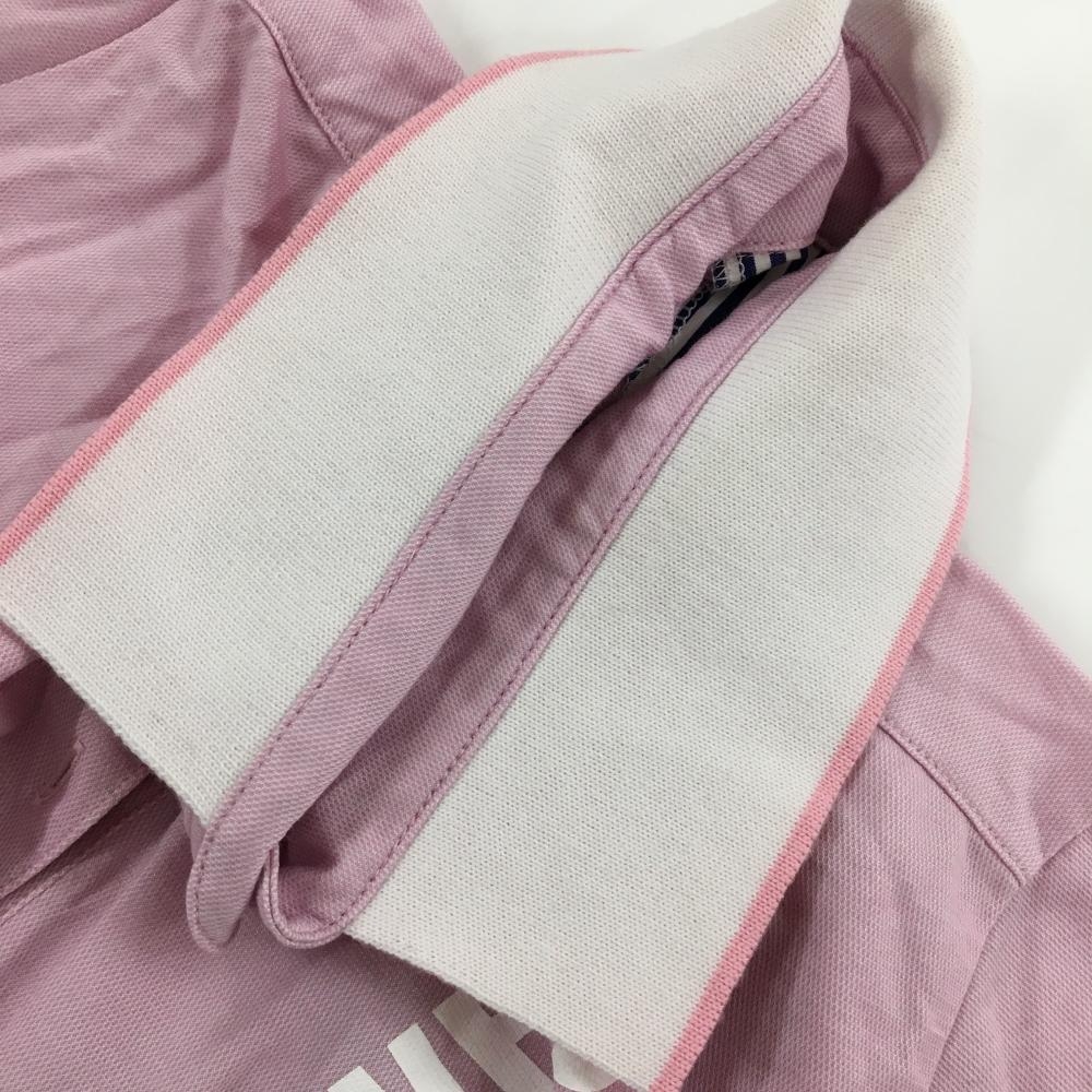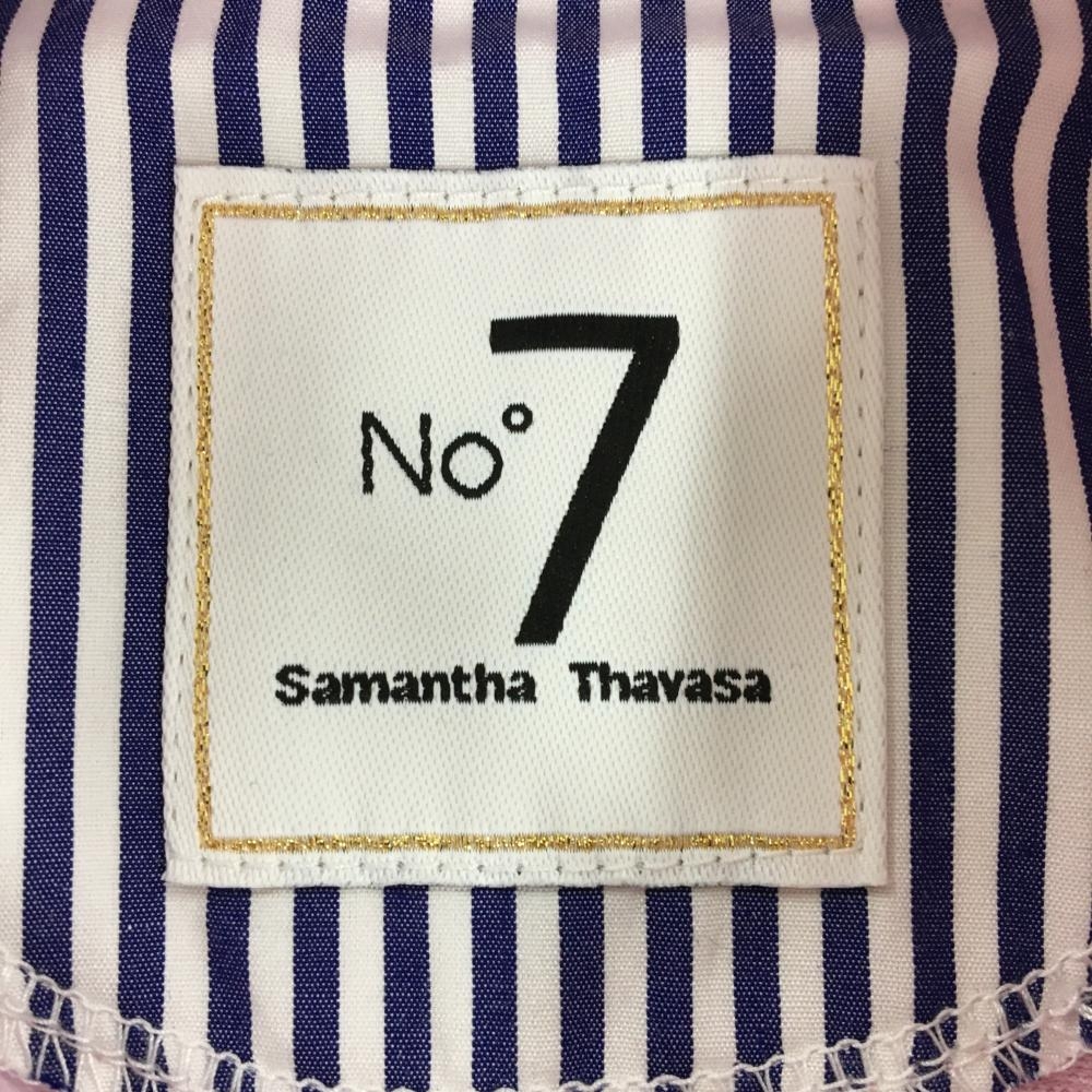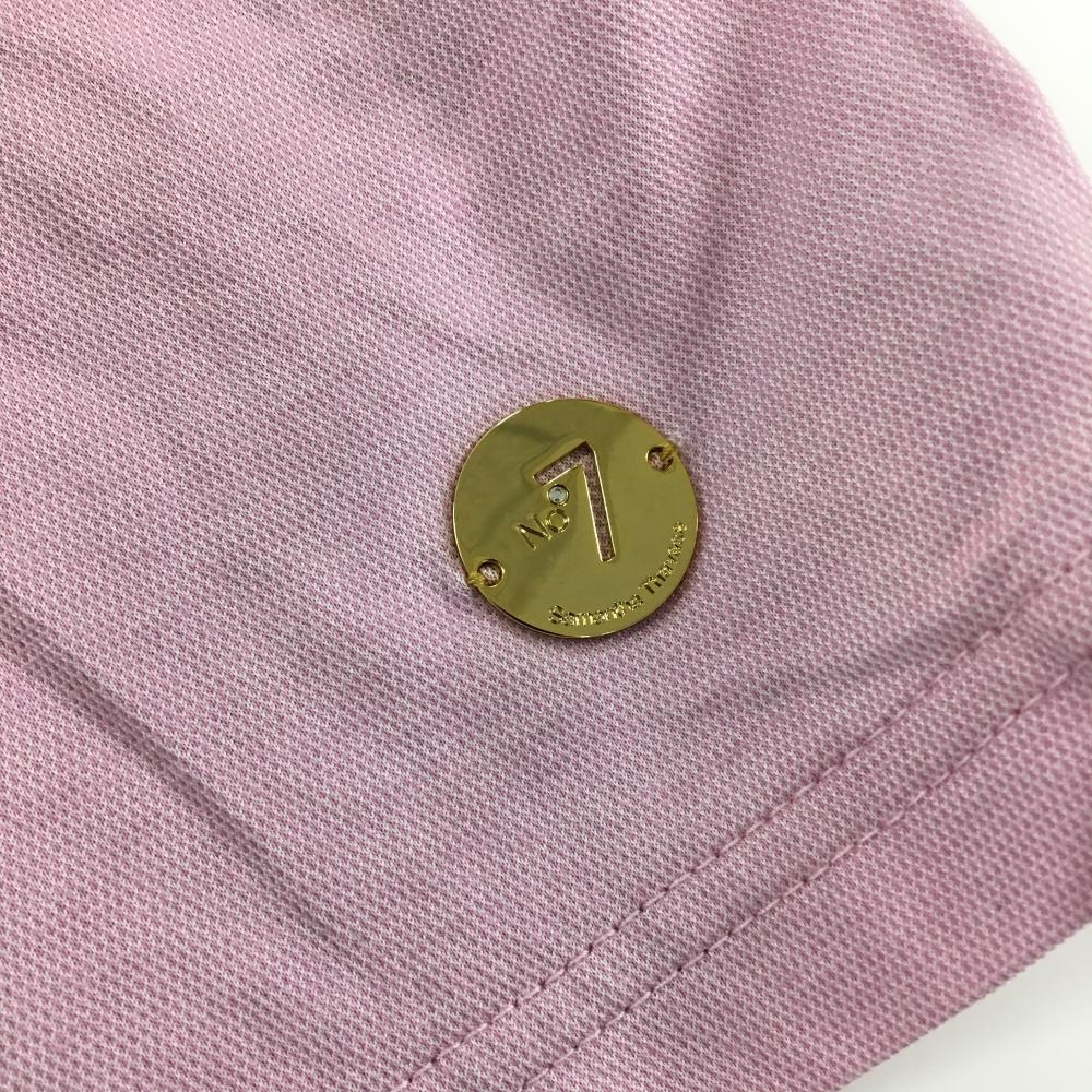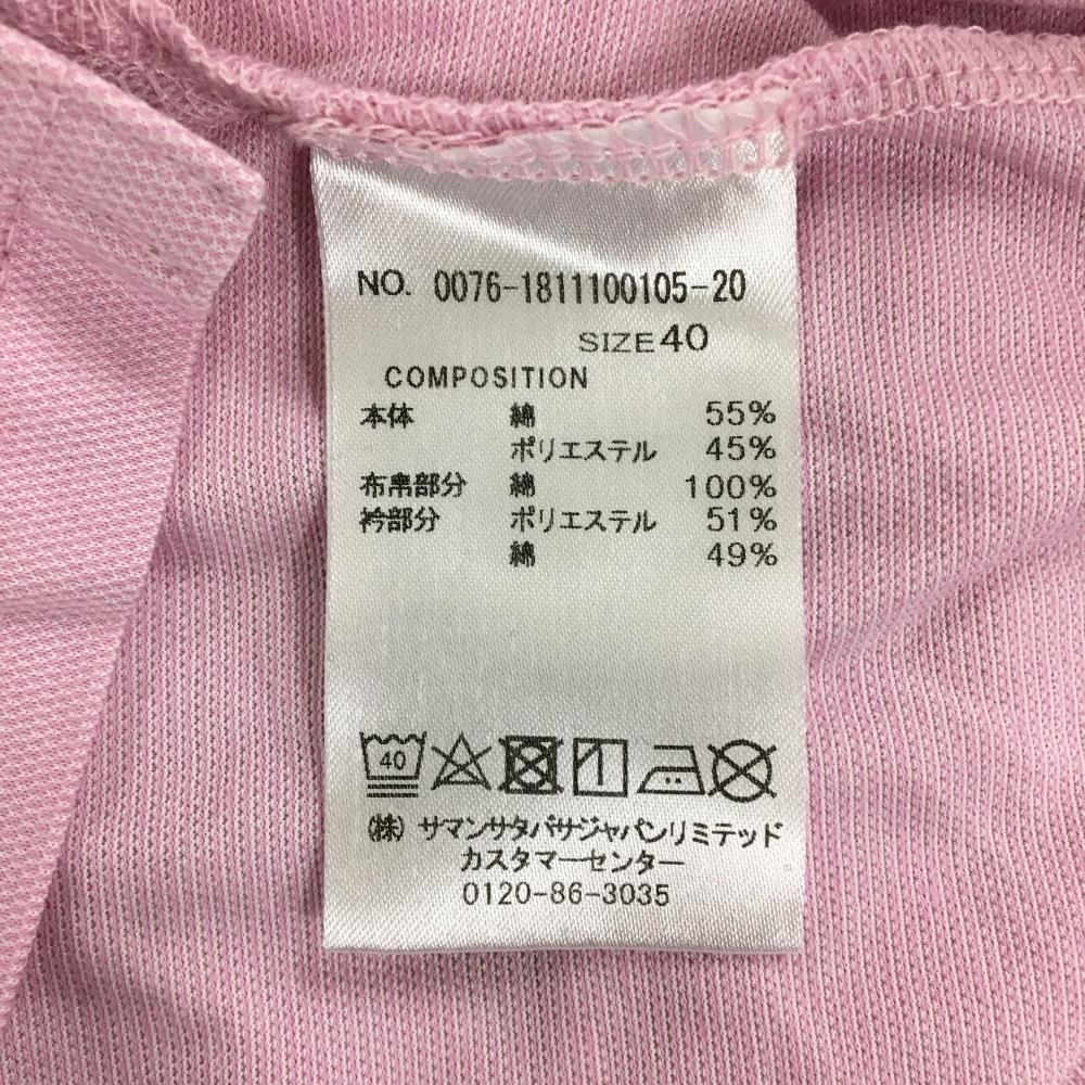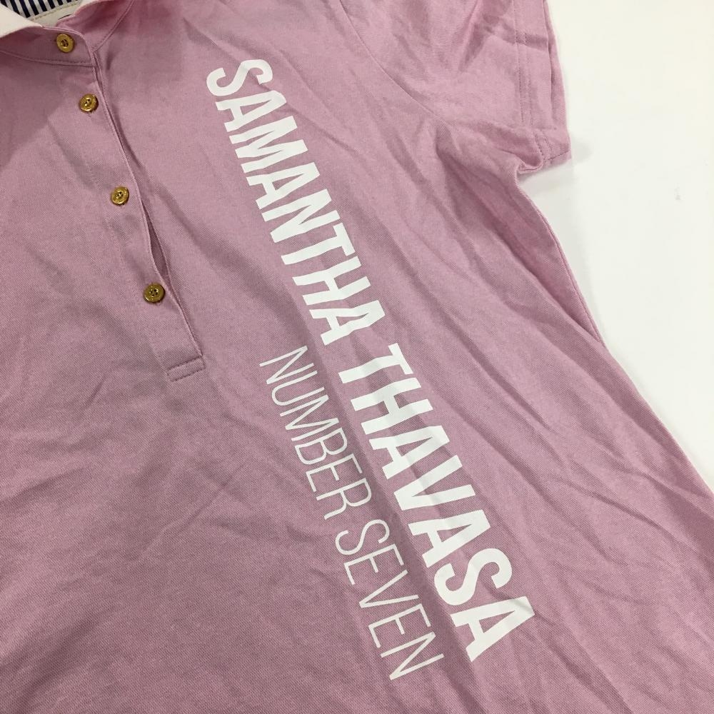 【美品】サマンサタバサ No.7 半袖ポロシャツ ピンク×白 織生地 ロゴプリント レディース 40(L) ゴルフウェア Samantha Thavasa