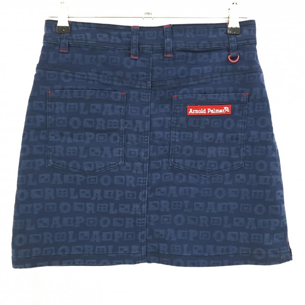 【美品】アーノルドパーマーゴルフ スカート ネイビー 英字柄 レディース S ゴルフウェア Arnold Palmer GOLF