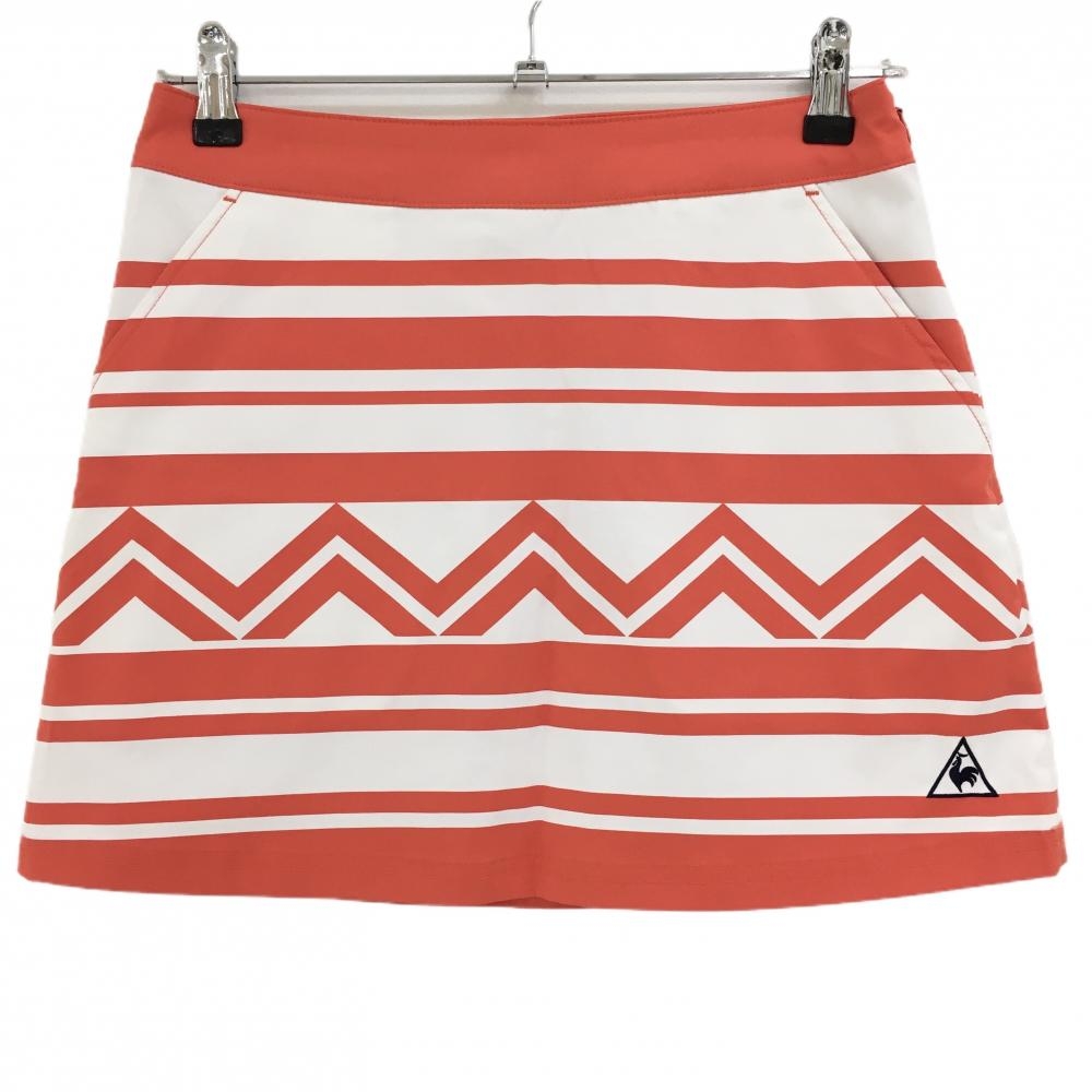 【超美品】ルコックゴルフ スカート 白×オレンジ ボーダー ストレッチ レディース 9 ゴルフウェア le coq sportif