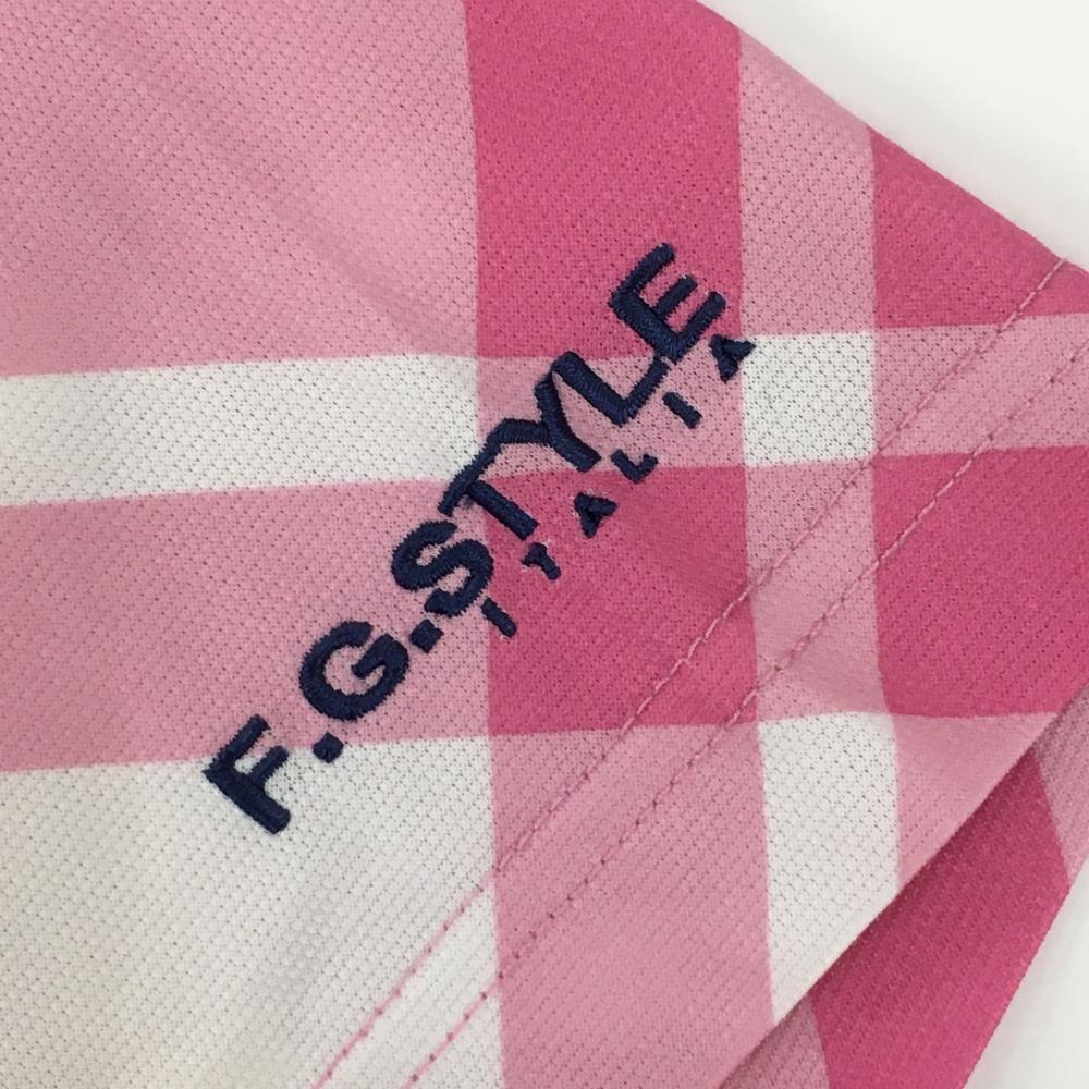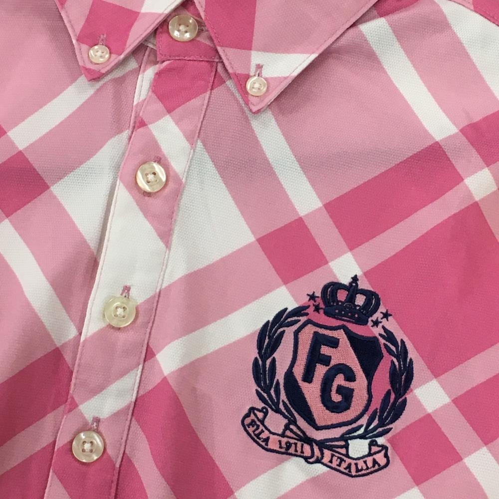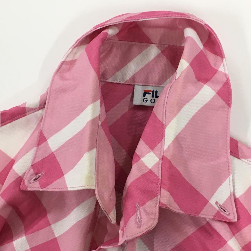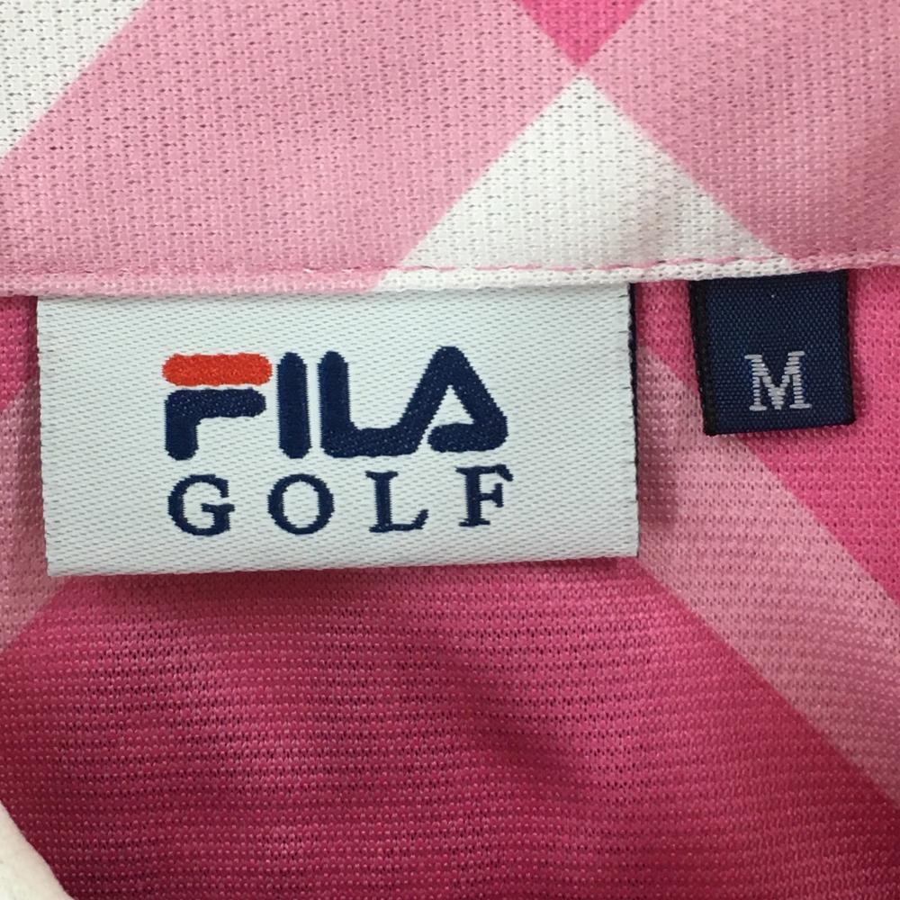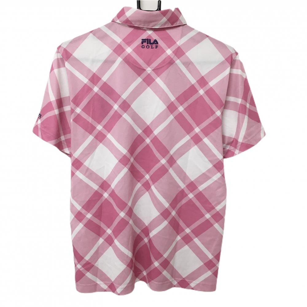 フィラゴルフ 半袖ポロシャツ ピンク×白 斜め格子柄 ロゴ刺しゅう メンズ M ゴルフウェア FILA GOLF