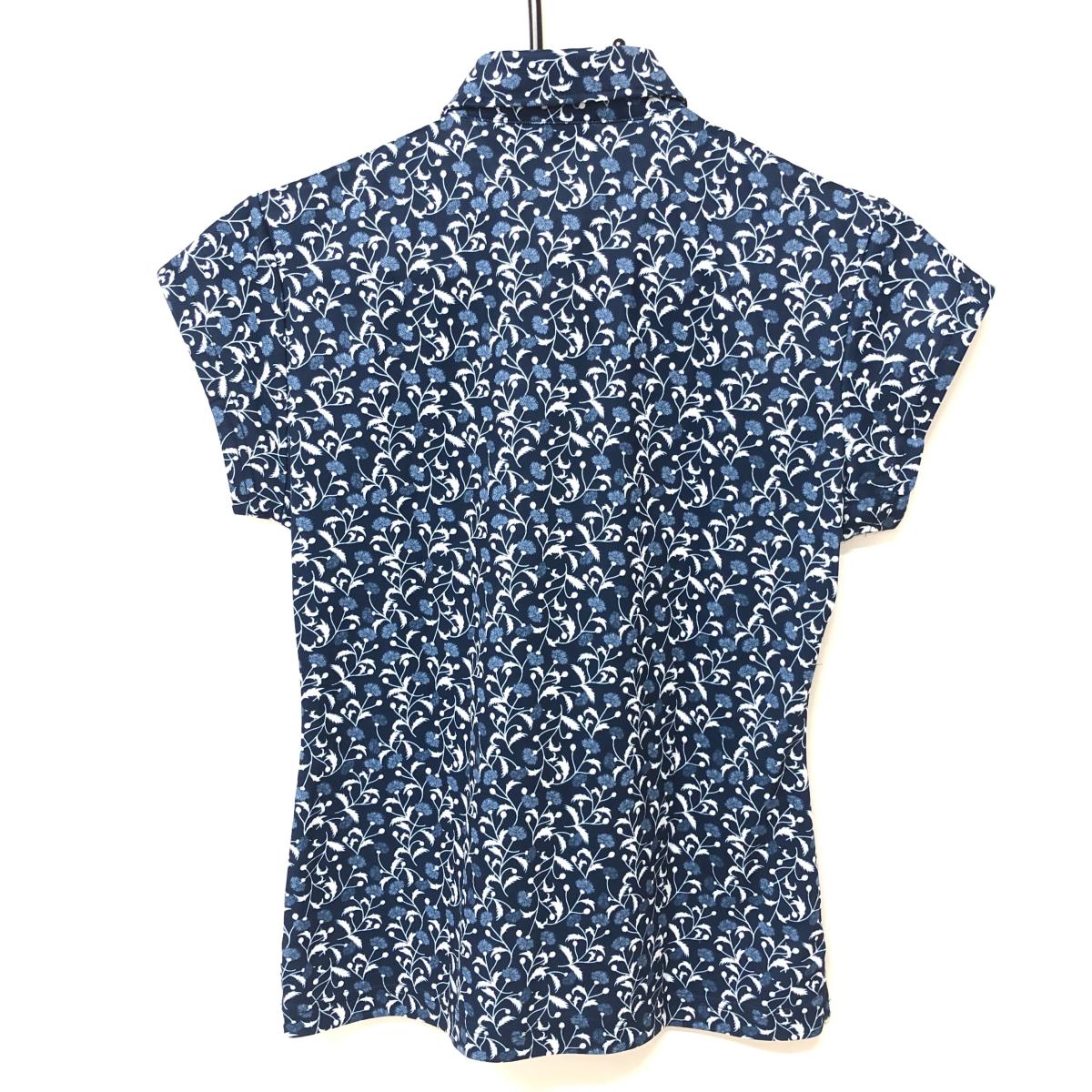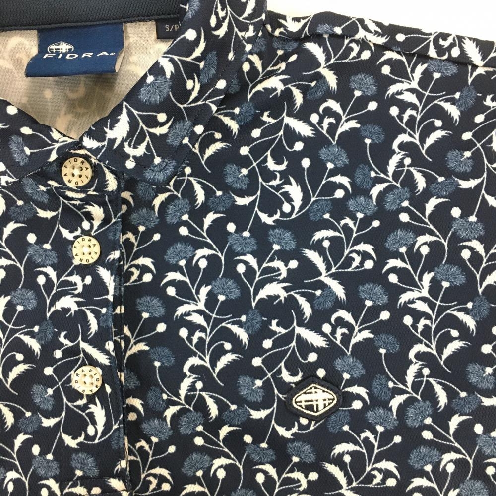 【超美品】フィドラ 半袖ポロシャツ ネイビー×白 花柄 レディース S/P ゴルフウェア FIDRA