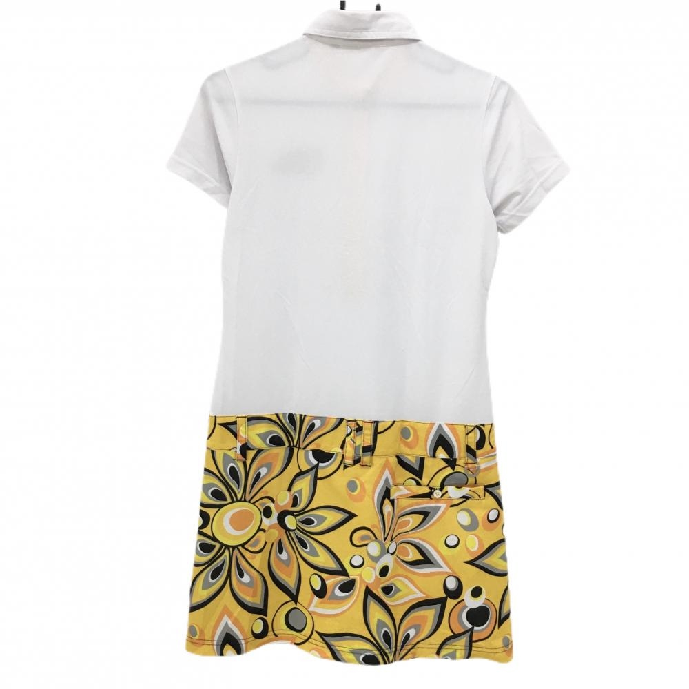 ラウドマウス 半袖ポロワンピース 白×オレンジ スカート部総柄 ロゴ刺しゅう レディース M ゴルフウェア LOUDMOUTH