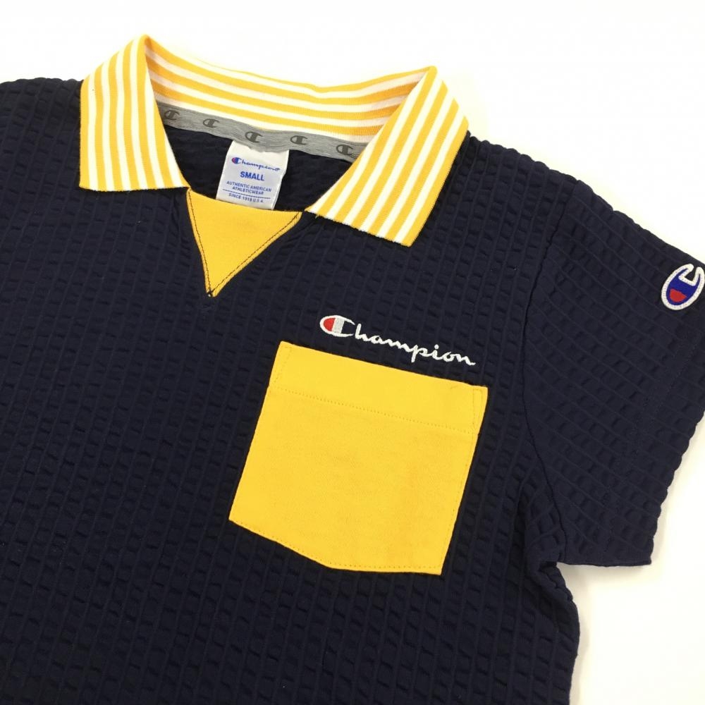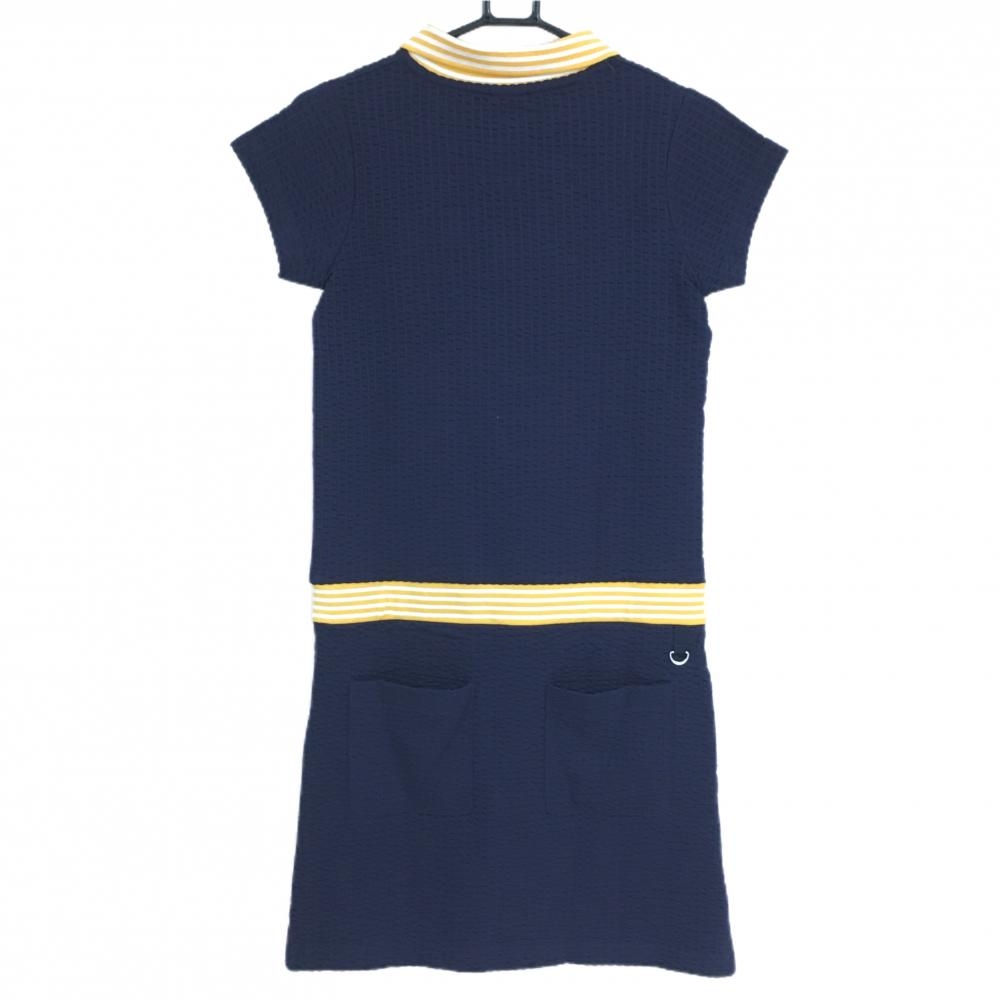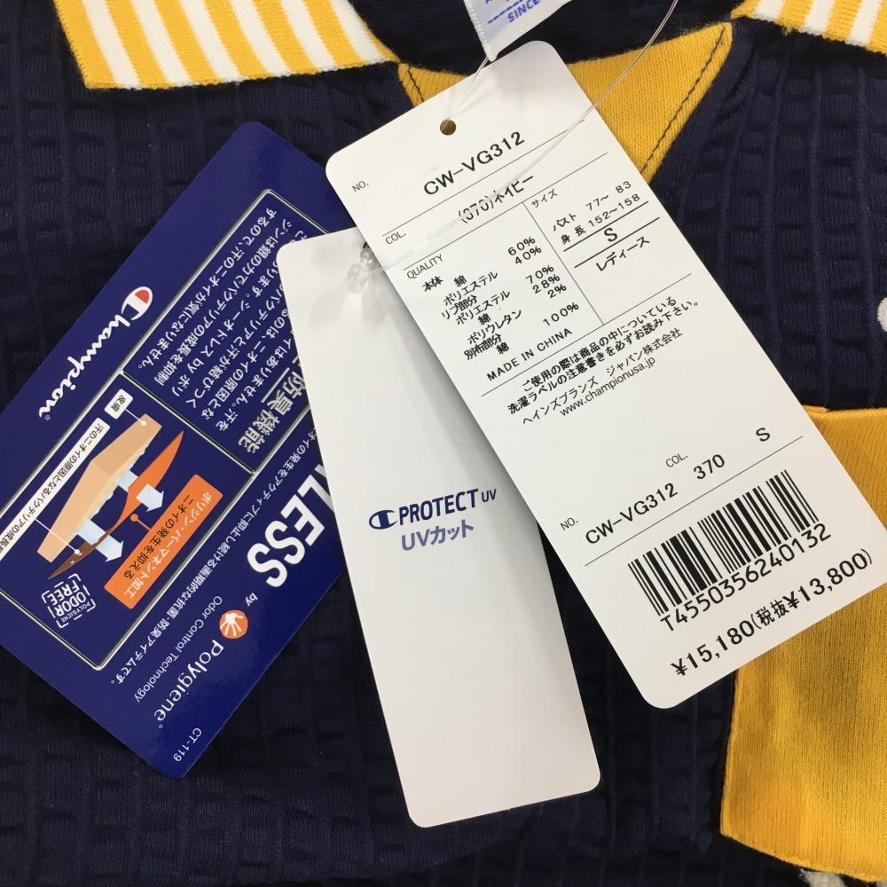 【新品】チャンピオン 半袖ポロワンピース ネイビー×イエロー サッカー生地 襟ボーダー レディース L ゴルフウェア Champion