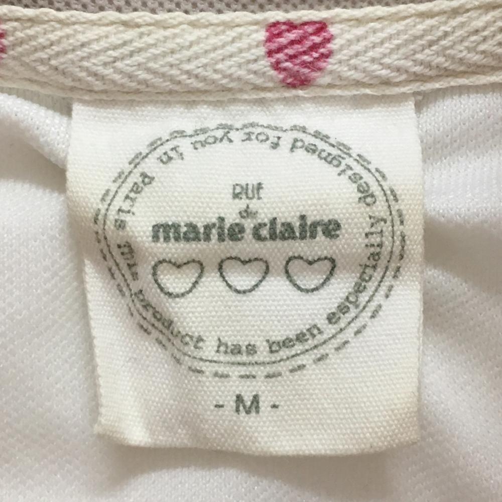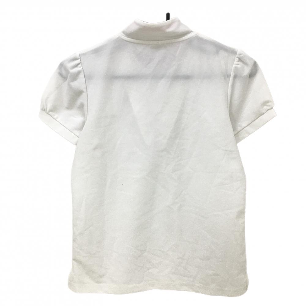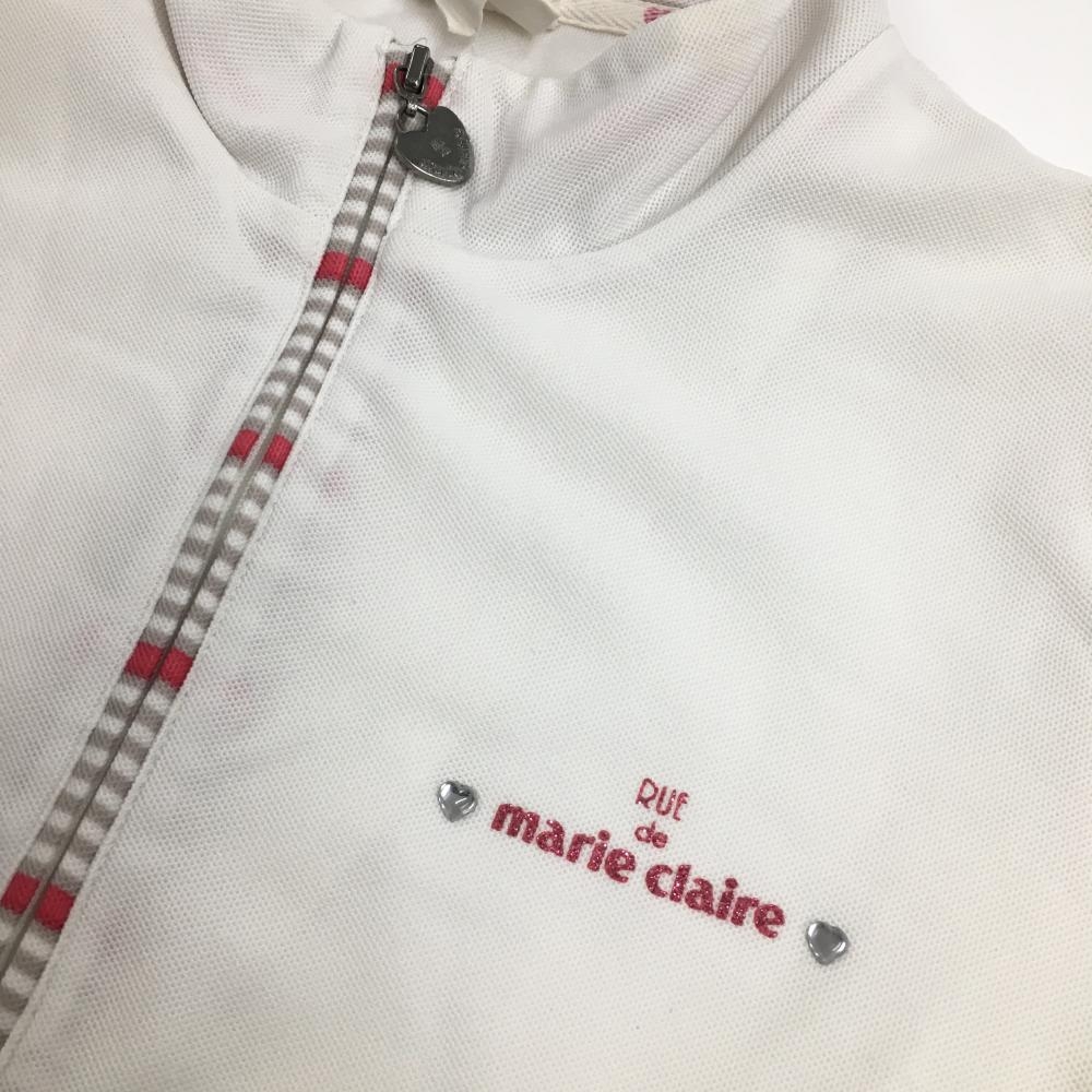 【美品】マリクレール 半袖ハイネックシャツ 白×ピンク 一部ボーダー柄 ロゴプリント レディース M ゴルフウェア marie claire