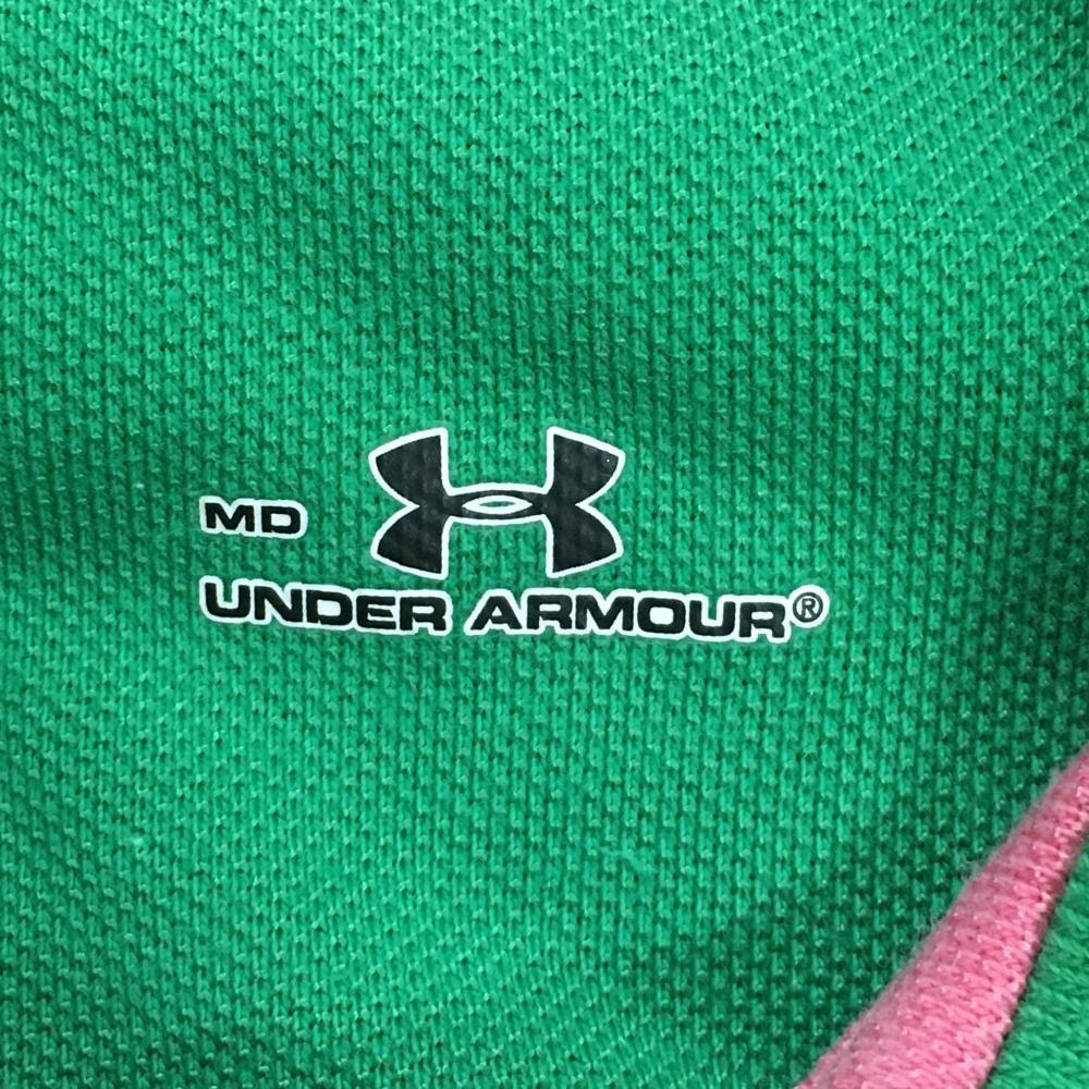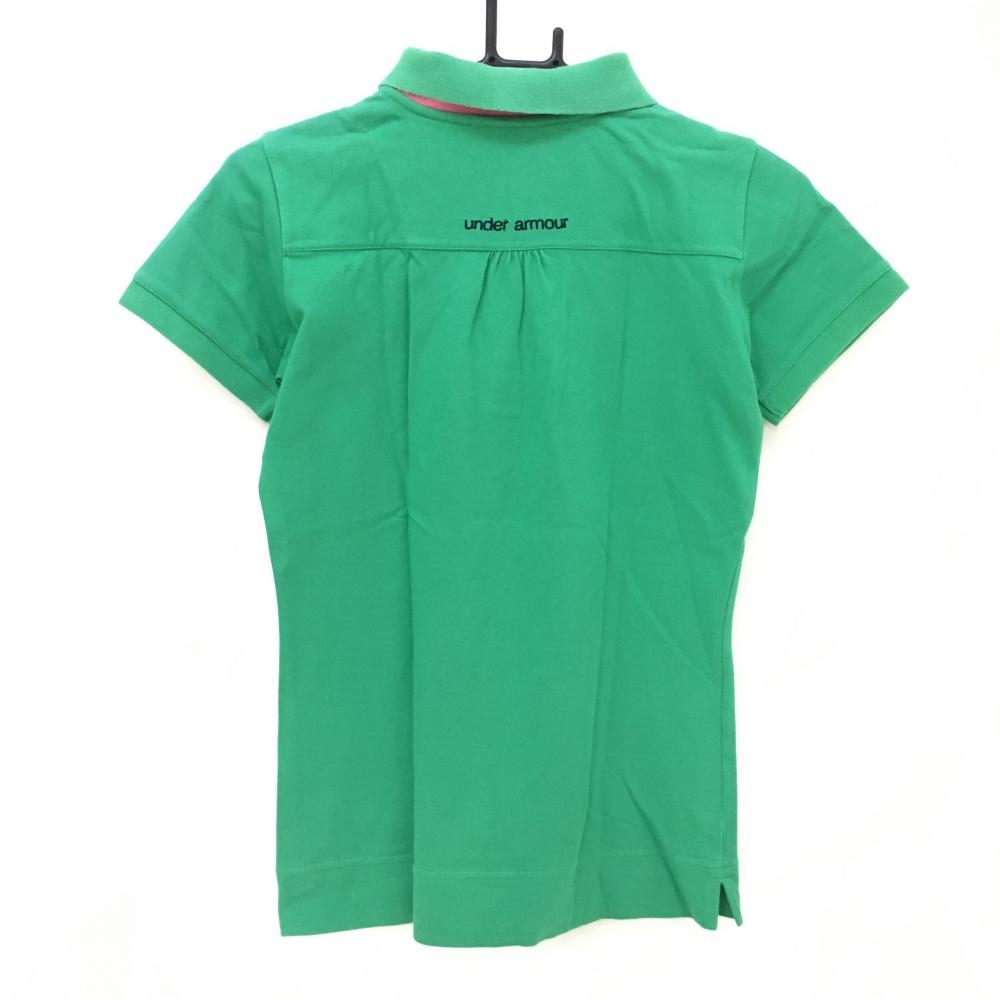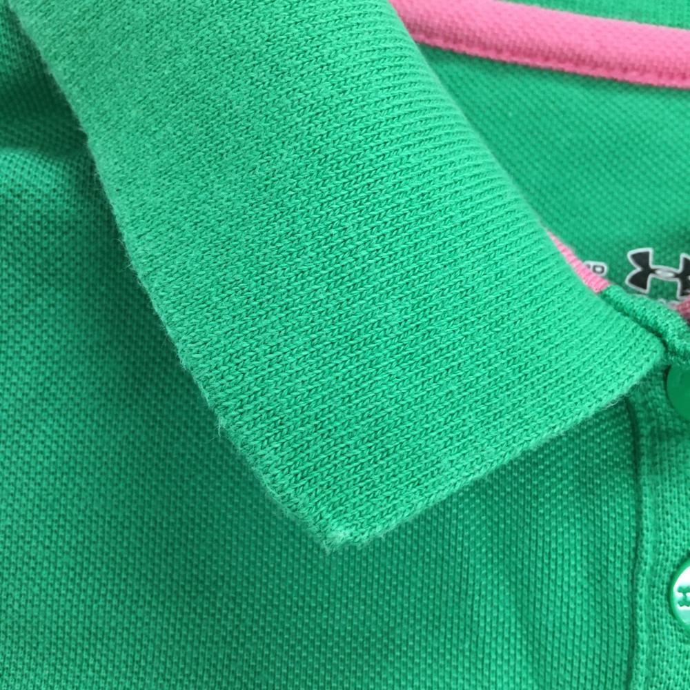 アンダーアーマー 半袖ポロシャツ グリーン×ピンク ロゴ刺しゅう レディース MD ゴルフウェア UNDER ARMOUR
