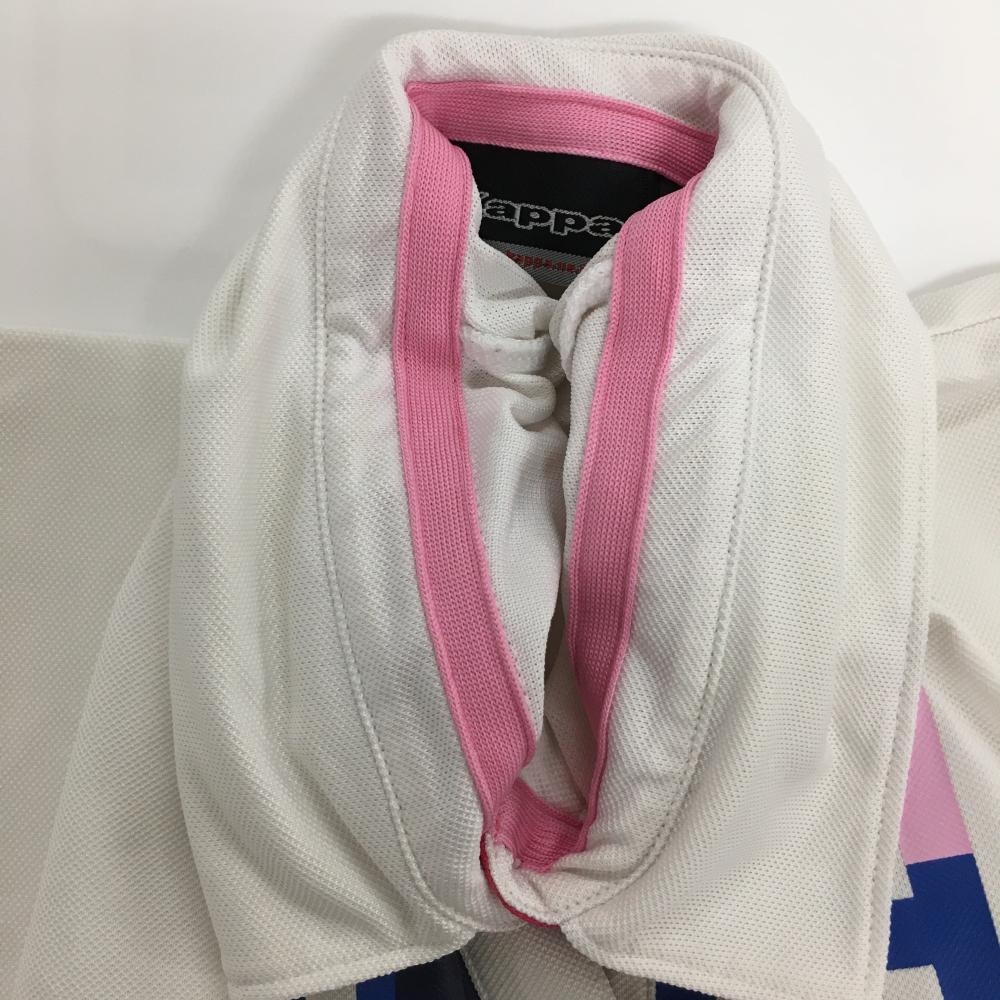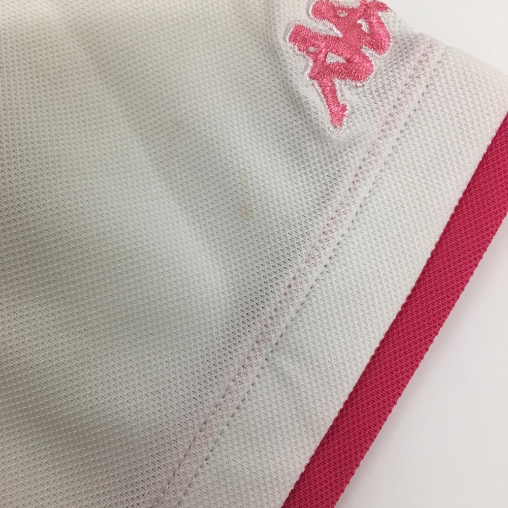 カッパ 半袖ポロシャツ 白×ピンク ビッグプリント 袖ロゴ刺しゅう レディース M ゴルフウェア Kappa