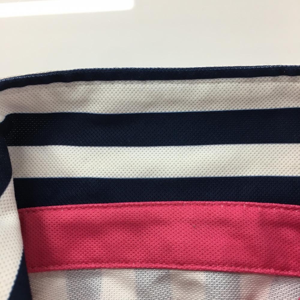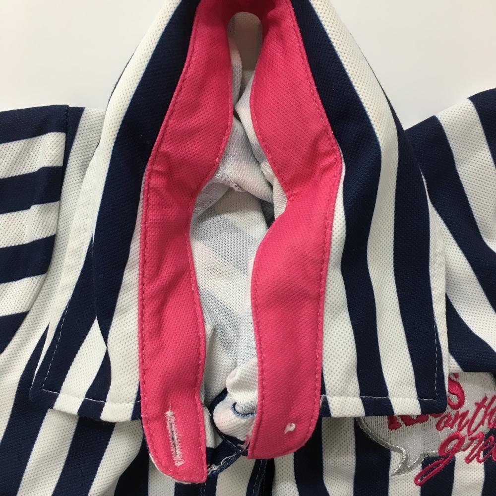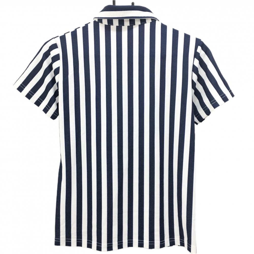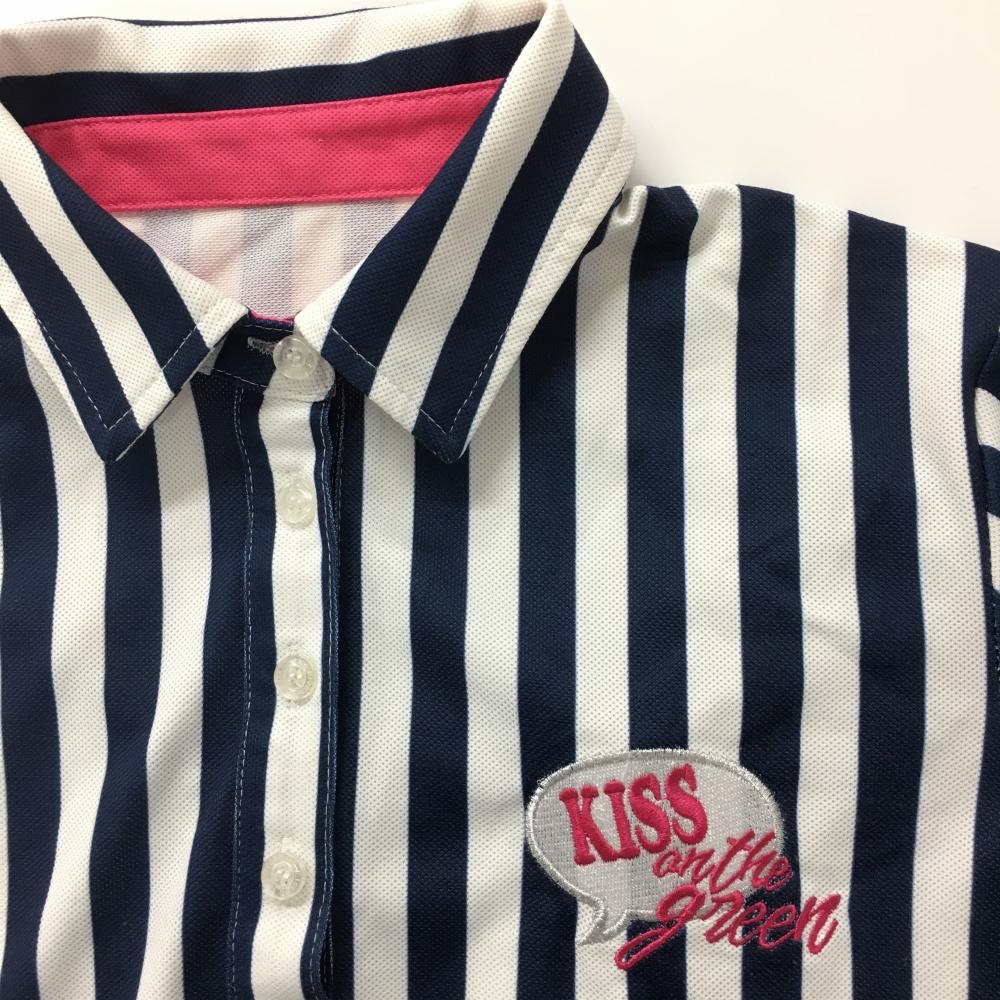 【美品】キスオンザグリーン 半袖ポロシャツ ネイビー×白 ストライプ レディース 2(M) ゴルフウェア kiss on the green