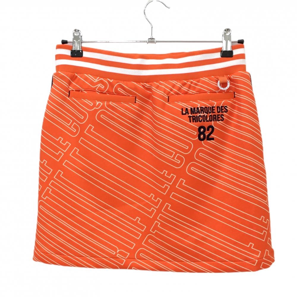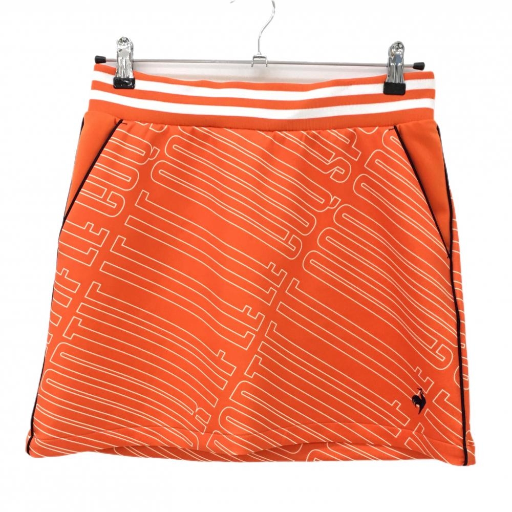【超美品】ルコック スカート オレンジ×白 総柄 ウエストゴム レディース 9(M) ゴルフウェア le coq sportif