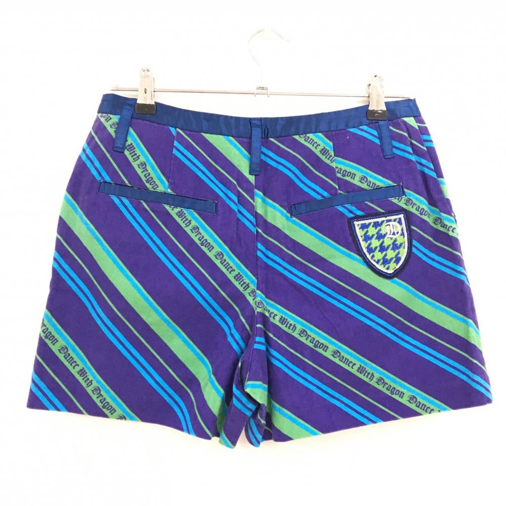 ダンスウィズドラゴン キュロットスカート パープル×グリーン 斜めボーダー調 レディース L ゴルフウェア Dance With Dragon