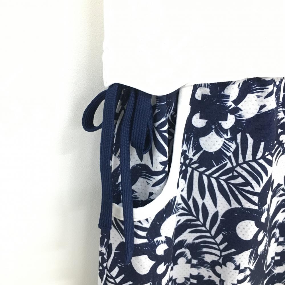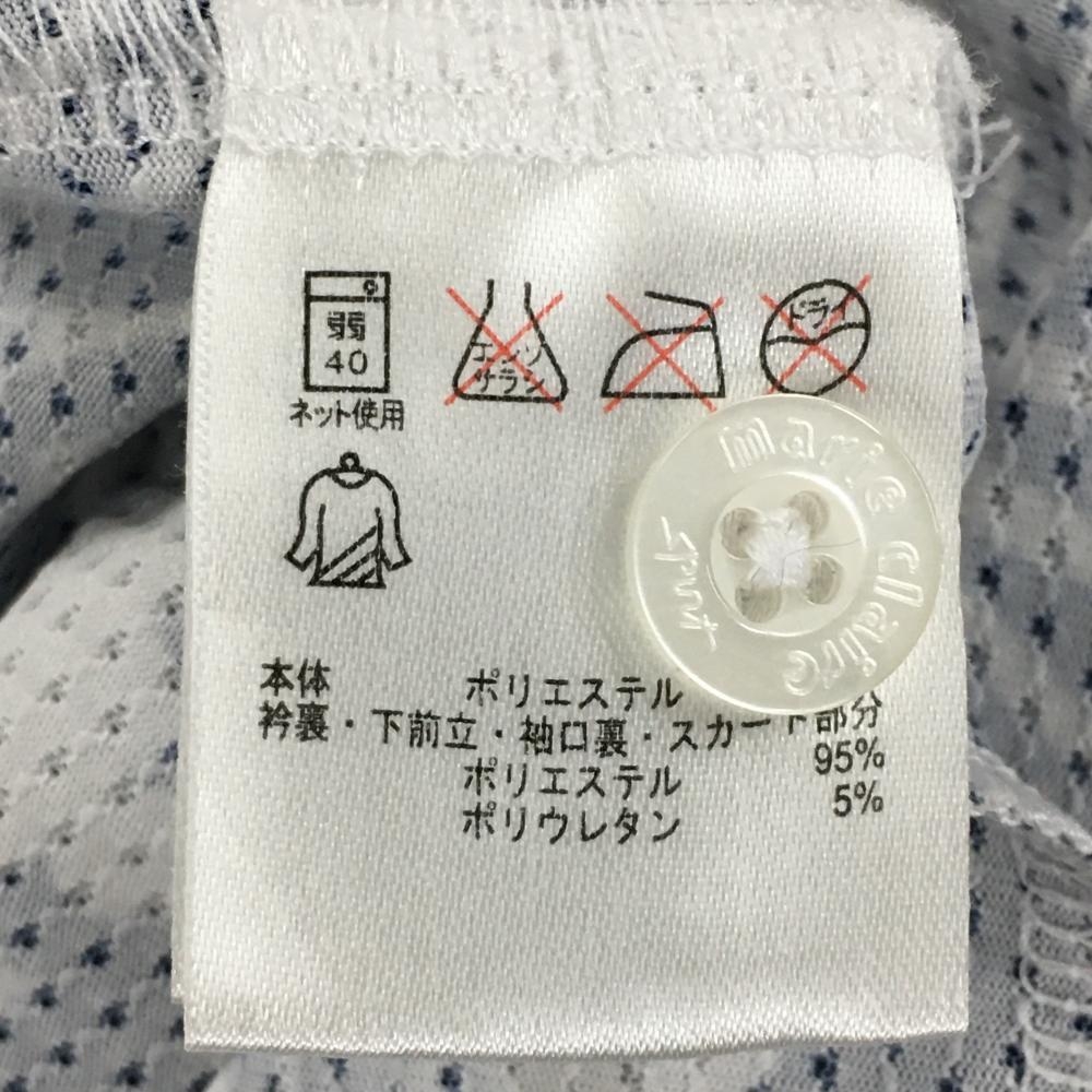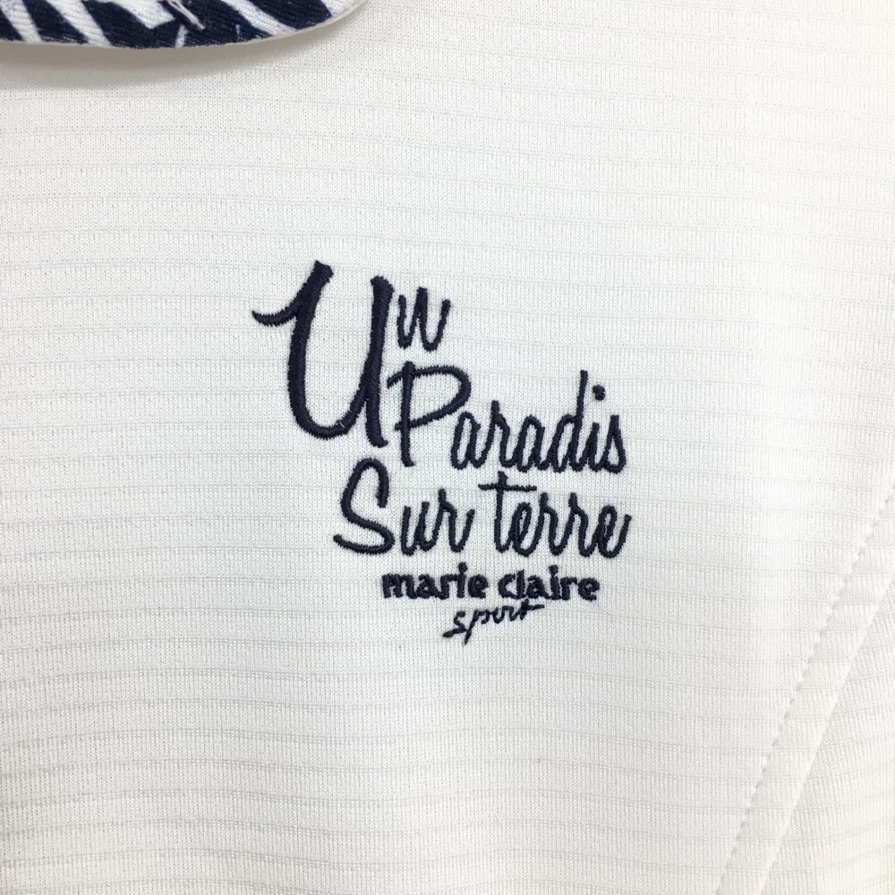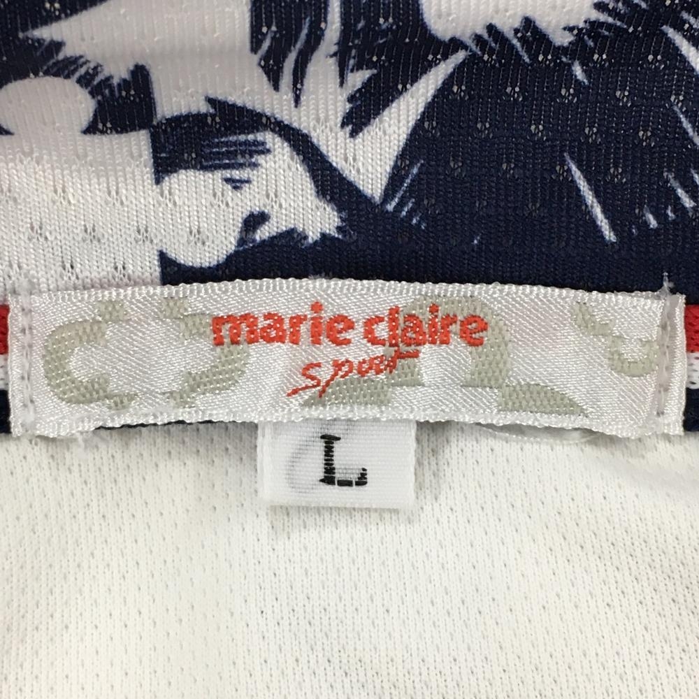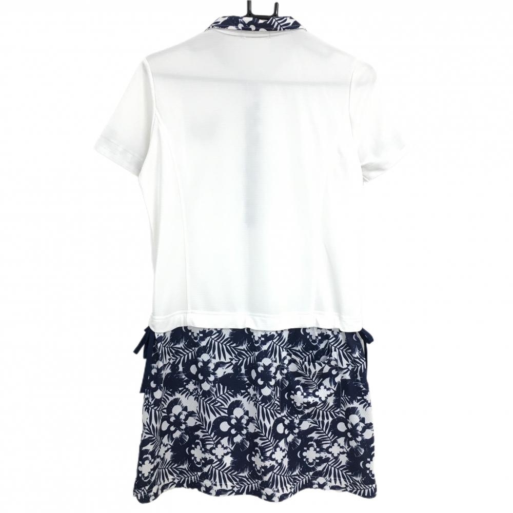 【超美品】マリクレール 半袖ポロワンピース 白×ネイビー 襟・スカート花柄×リーフ柄 レディース L ゴルフウェア marie claire