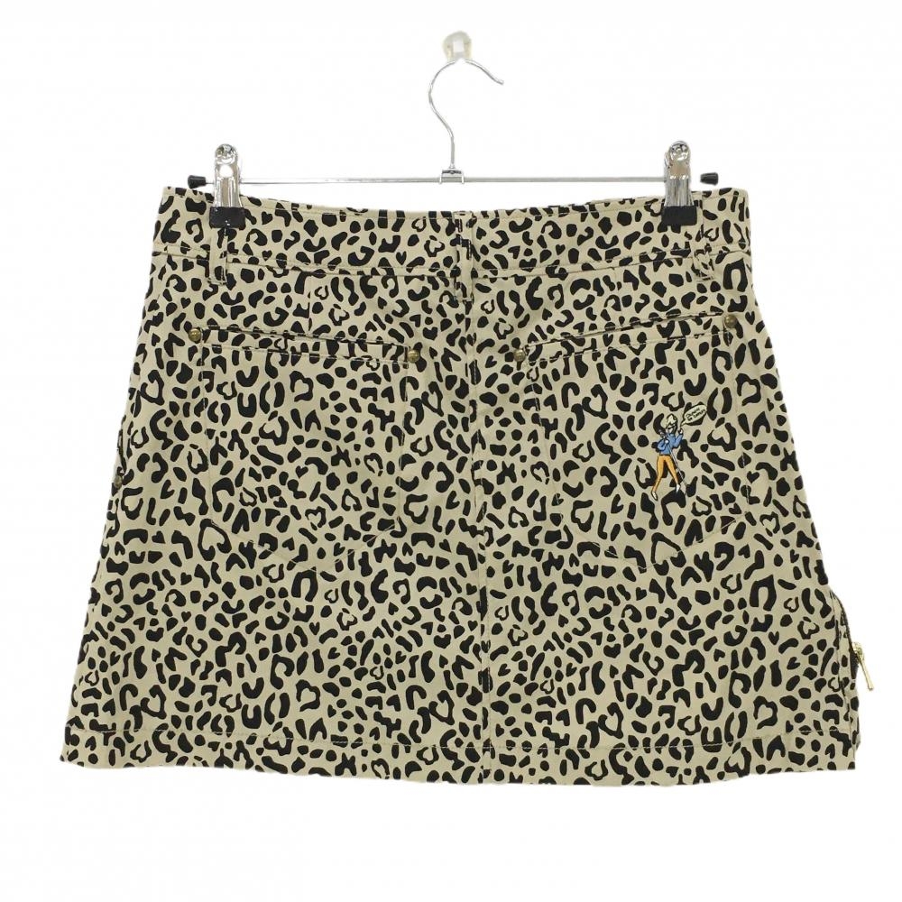 【超美品】ルコック スカート ベージュ×黒 レオパード ポケット レディース 11 ゴルフウェア le coq sportif