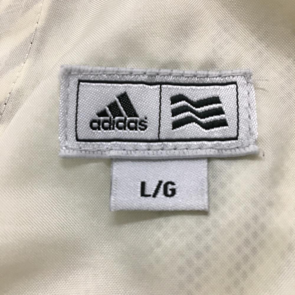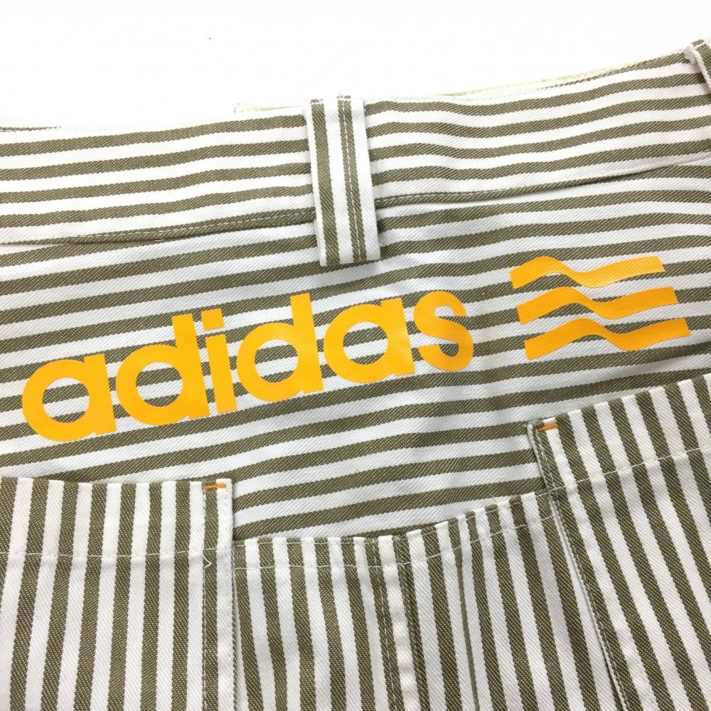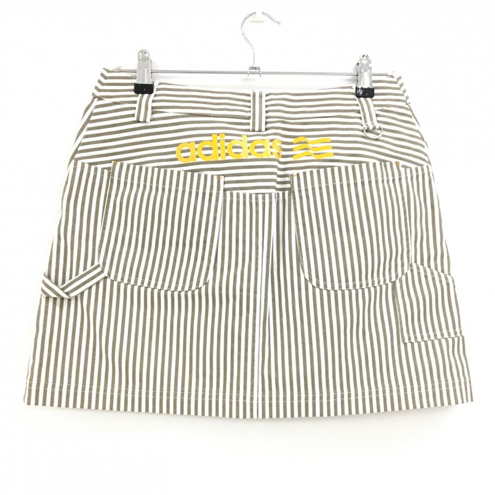 【美品】アディダス スカート アイボリー×カーキ ストライプ ロゴプリント レディース L/G ゴルフウェア adidas