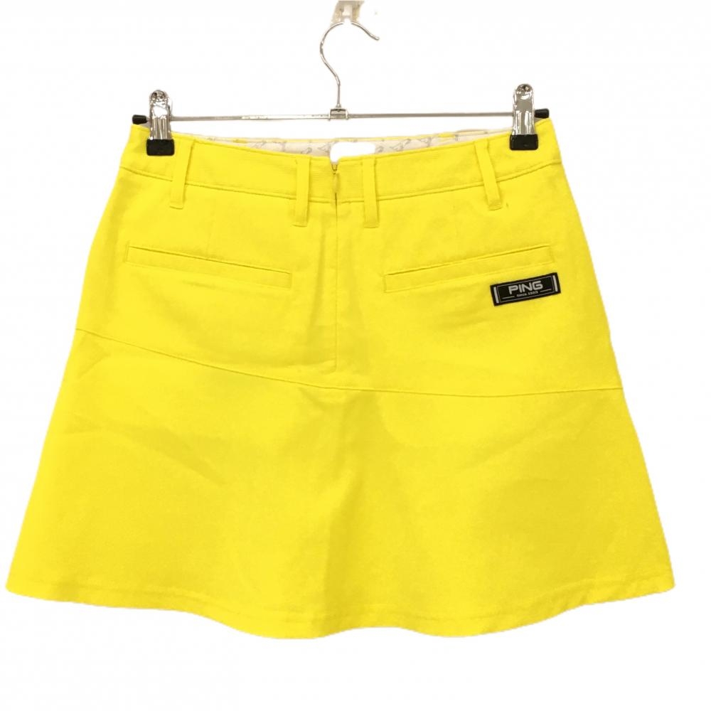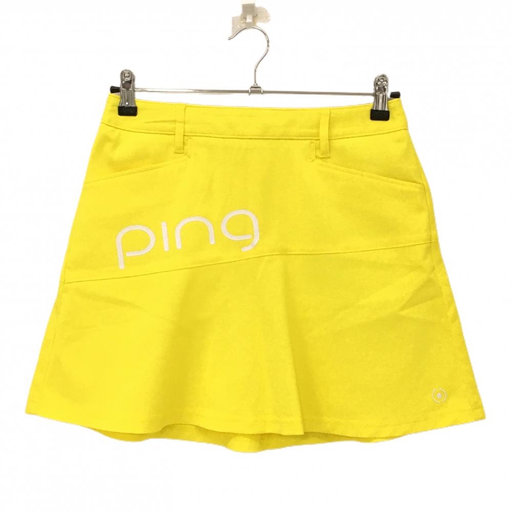 【超美品】ピン スカート イエロー×白 ビッグロゴ レディース M ゴルフウェア 2022年モデル PING