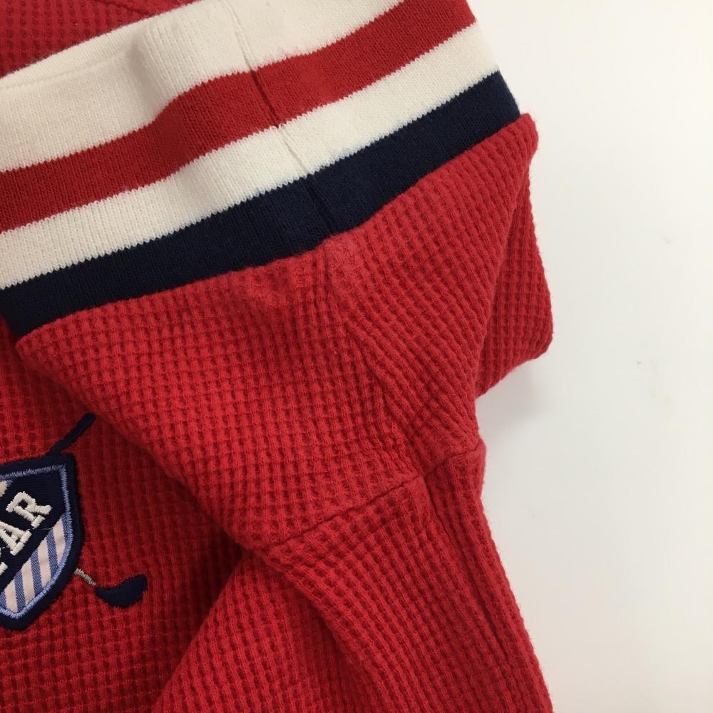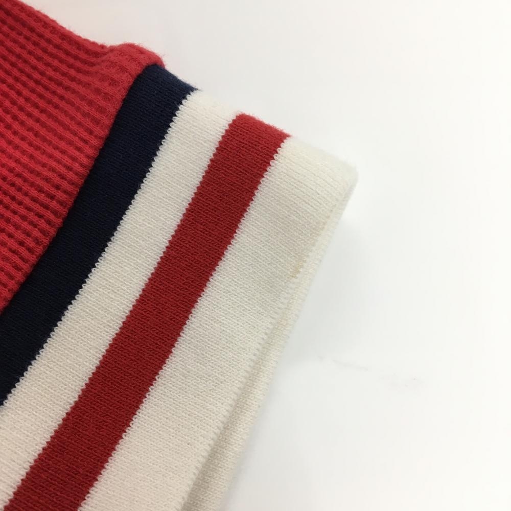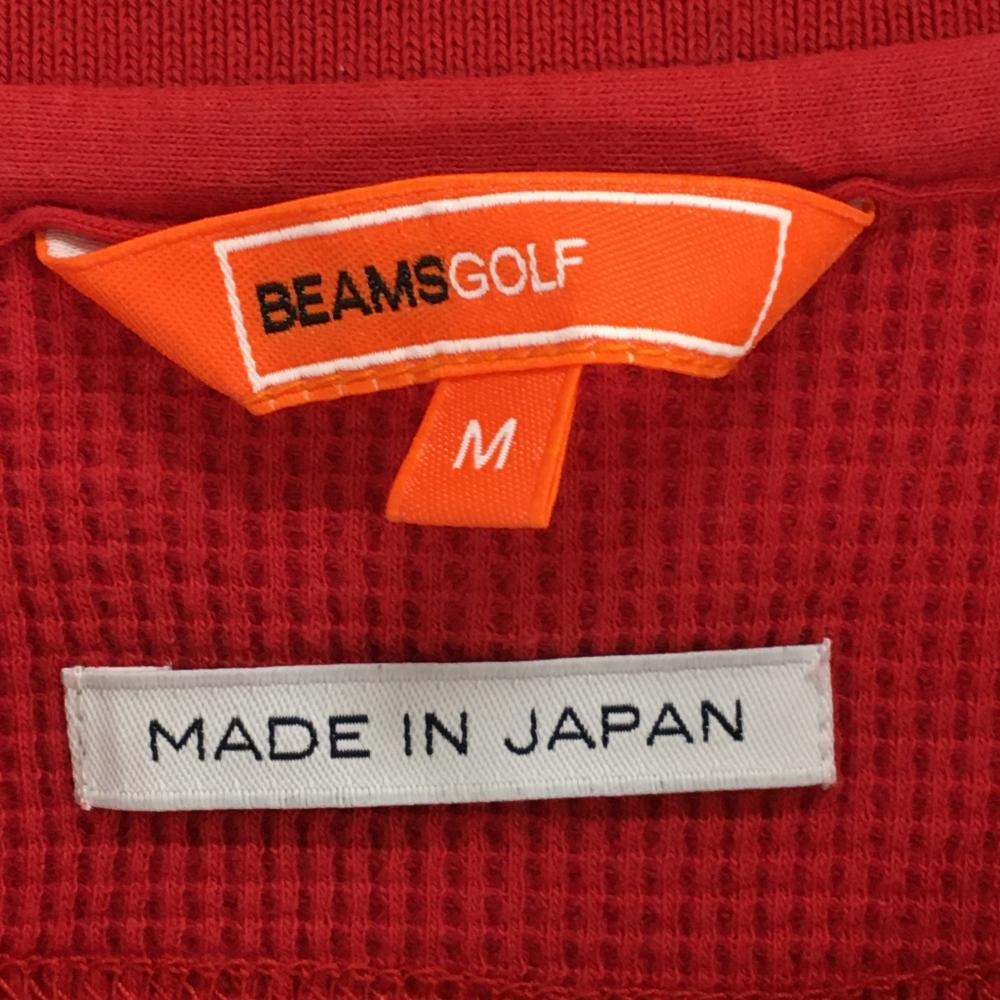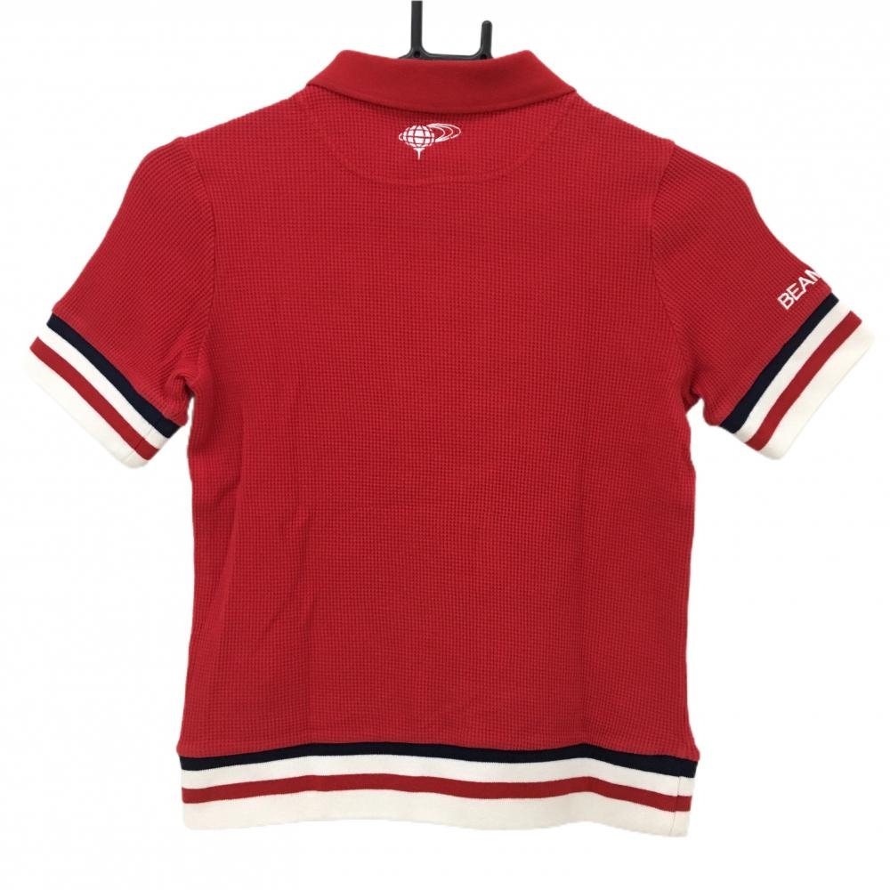 ビームスゴルフ 半袖ポロシャツ レッド×白 凹凸織生地 袖口・裾トリコロール レディース M ゴルフウェア BEAMS GOLF