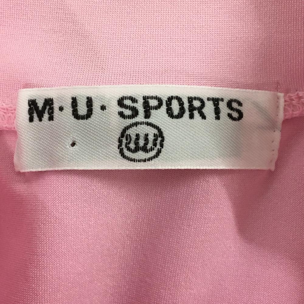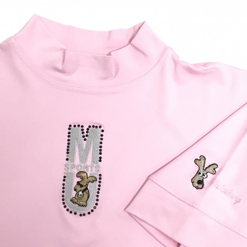 【美品】MUスポーツ 半袖ハイネックシャツ ピンク 胸刺しゅう ショート丈 レディース ゴルフウェア M・U SPORTS