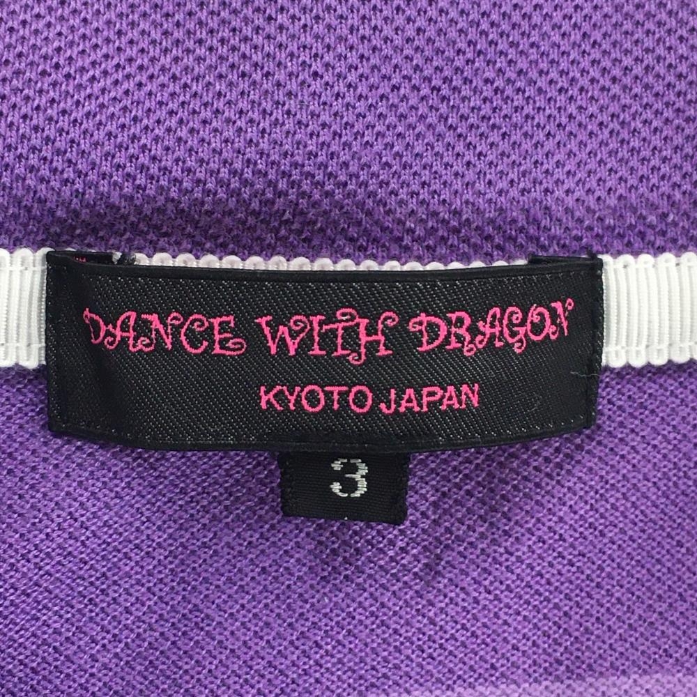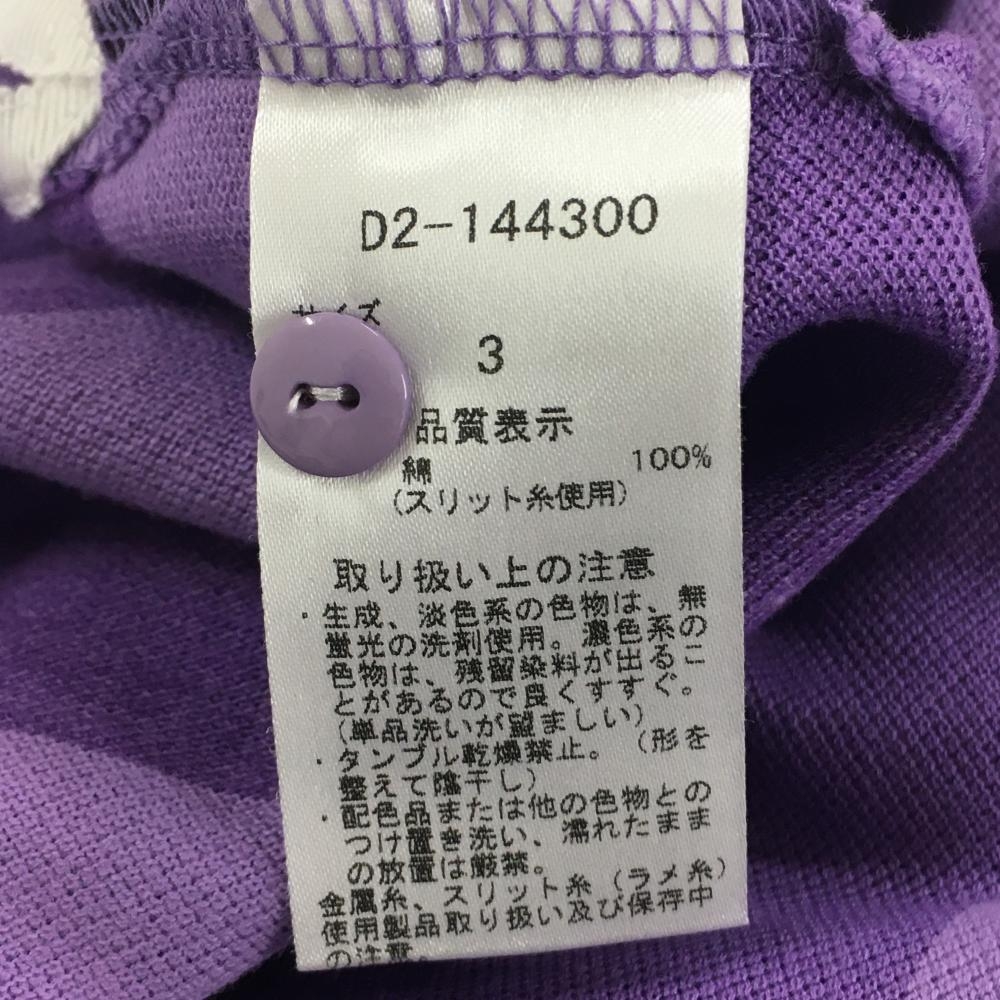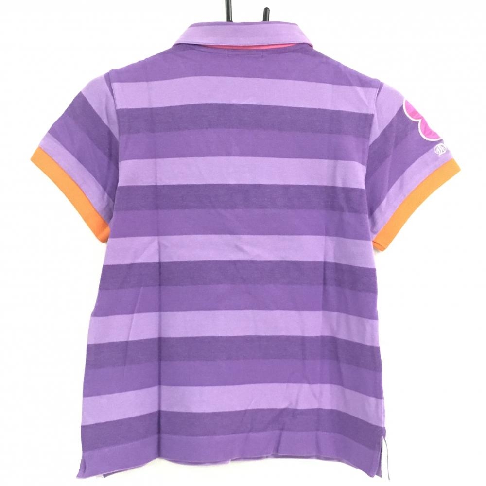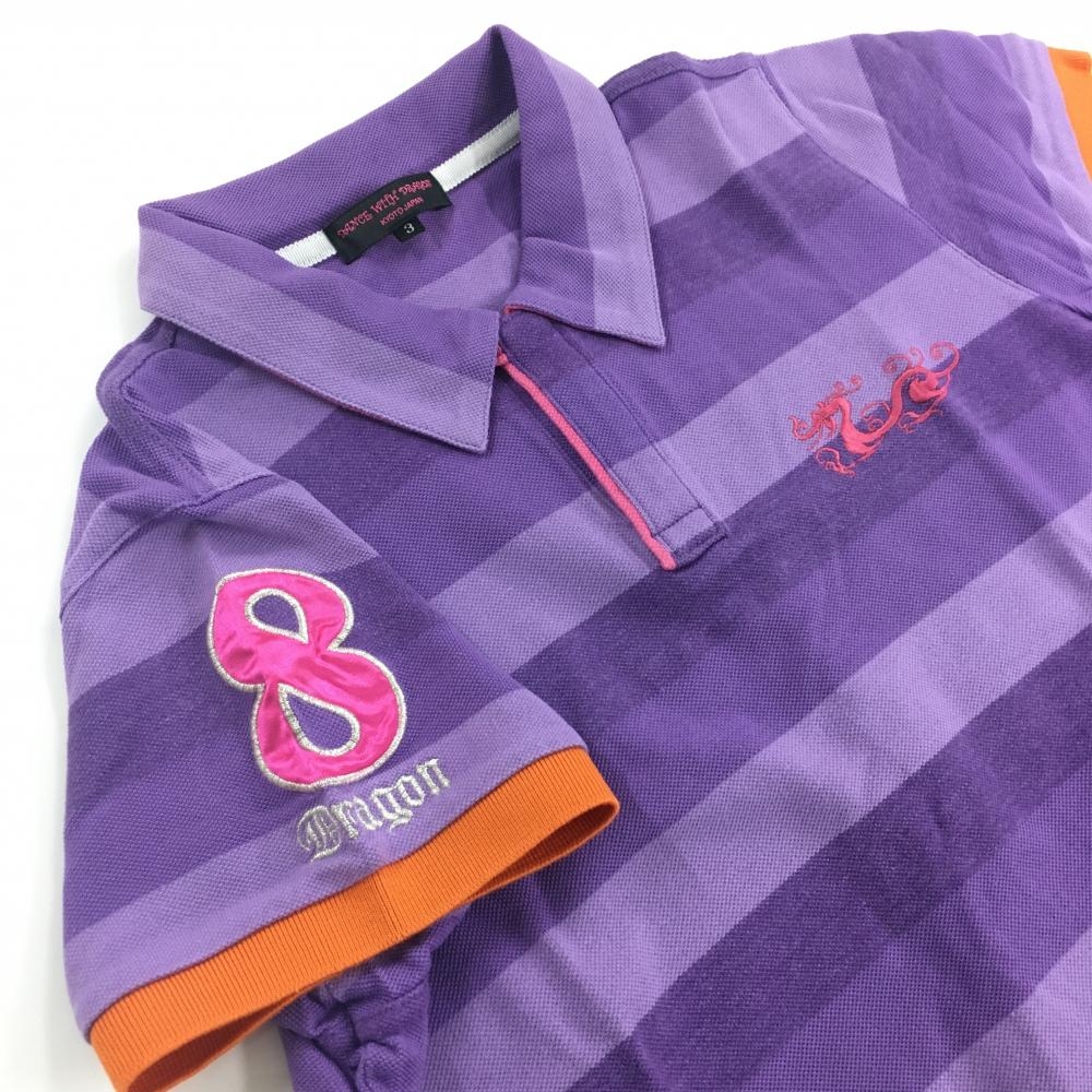 【超美品】ダンスウィズドラゴン 半袖ポロシャツ パープル ボーダー 綿100% レディース 3(L) ゴルフウェア Dance With Dragon